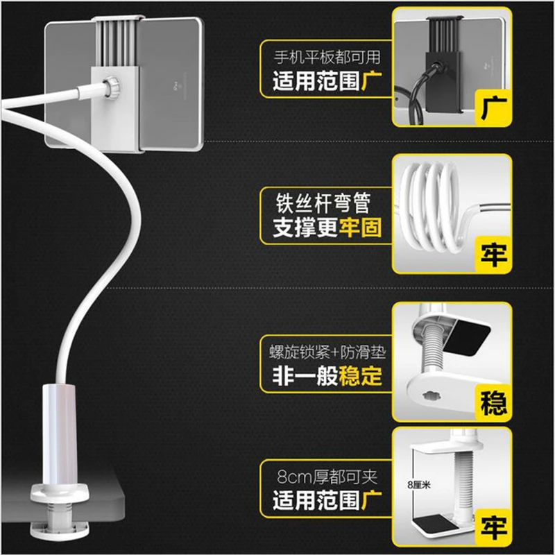 Особенности 1. С помощью этого ленивого держателя телефона Держите свой телефон на соответствующем расстоянии от ваших глаз. А также эргономично исправить неправильную осанку во время просмотра телефона Вращение на 2,360 градусов, а гибкие дужки позволяют легко расположить телефон на идеальном расстоянии и угле для удобного просмотра 3. Большое основание зажима для устойчивого монтажа без вибраций. Крепкие и гибкие ручки защищают смартфон от падения или перемещения 4. Идеально подходит для просмотра фильмов или наслаждения музыкой в спальне, кухне, тренажерном зале и офисе 5. Общая длина этого держателя составляет 80 см/31 дюйм. Тип растягивающегося зажима совместим с сотовыми телефонами или планшетами размером 4-10,6 дюйма Технические характеристики Название продукта: держатель для мобильного телефона Цвет: как показано на фотографиях Длина: 80 см/31 дюйм Материал: ПВХ, пластик Тип зажима Совместимая модель: до 5,5 дюймов Тип растягивающегося зажима Совместимая модель: 5,4-10,6 дюйма