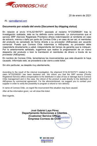 Страна: CL Доставка: Standard Shipping 22.01.2021