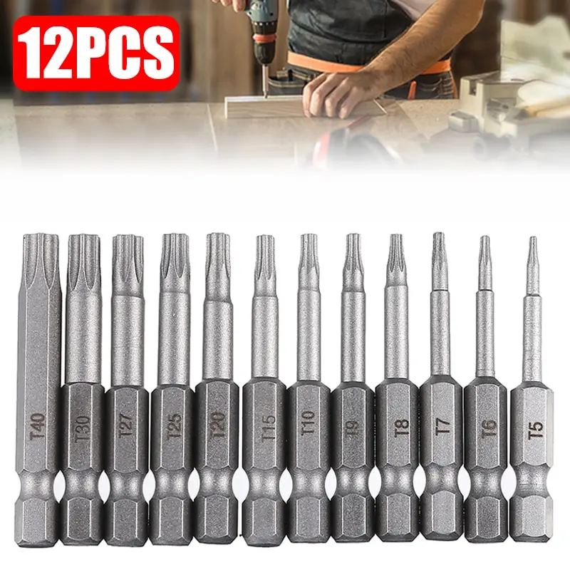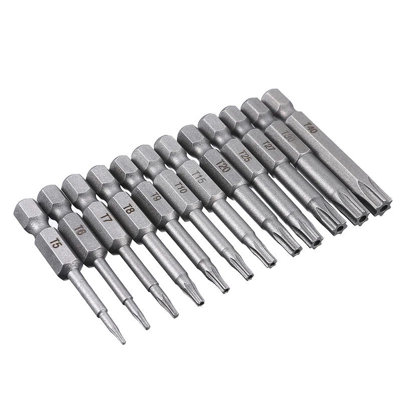 Набор Магнитных отверток T5-T40 дюйма, 50 мм, 14 дюйма, головка электрической отвёртки T5T6T7T8T9T10T15T20T25T27T30T40, 12 шт.