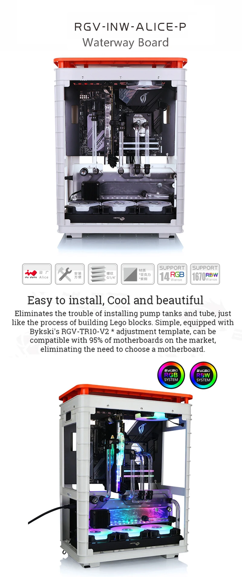 Акриловая доска BYKSKI, набор водных каналов для IN WIN Alice, чехол для компьютера, чехол для ЦПГП, блок, поддержка DDC насоса RGB