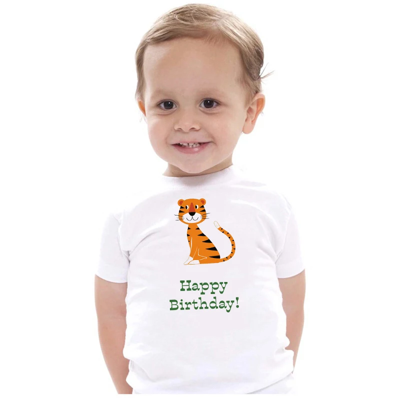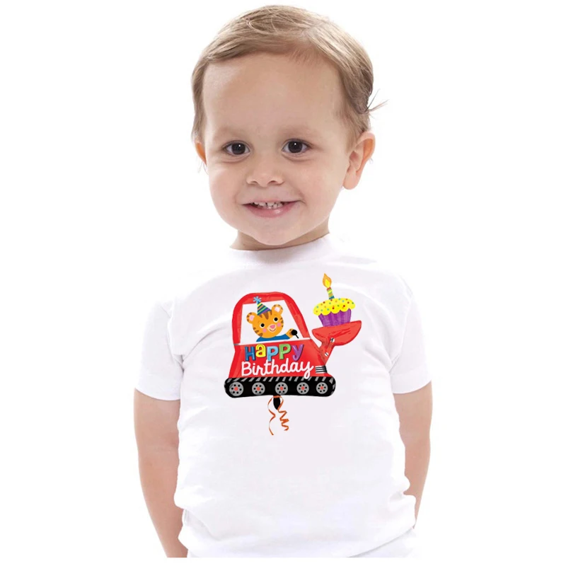С днем рождения, летняя детская одежда, футболка для мальчиков, футболка с коротким рукавом с мультяшным тигром, Повседневная Милая футболка для мальчиков, От 2 до 6 лет