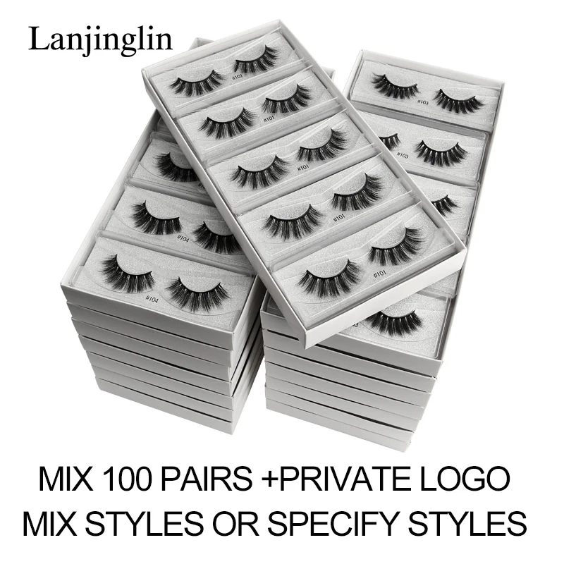 LANJINGLIN оптовая продажа 1020304050100 пар объемных 3d искусственных норковых ресниц натуральные длинные накладные ресницы толстые пушистые объемные ресницы