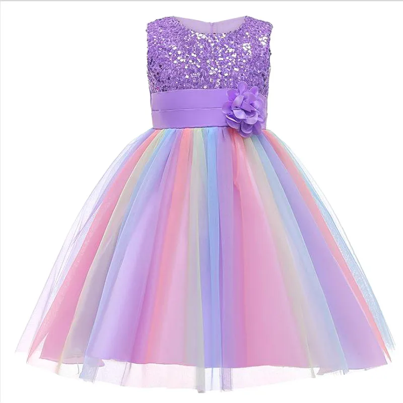 Летнее платье с блестками и цветами для девочек, одежда для дня рождения для девочек, свадебные платья для принцесс, праздничные платья, Рождественская детская одежда