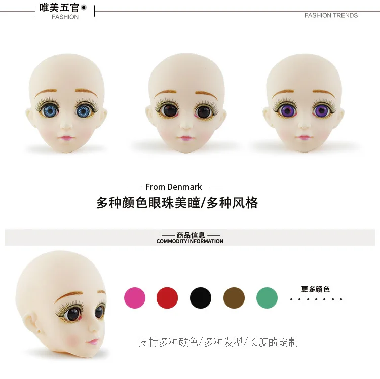 Распродажа BJD голова куклы 3D глаза подходит для 30 см обтягивающи...