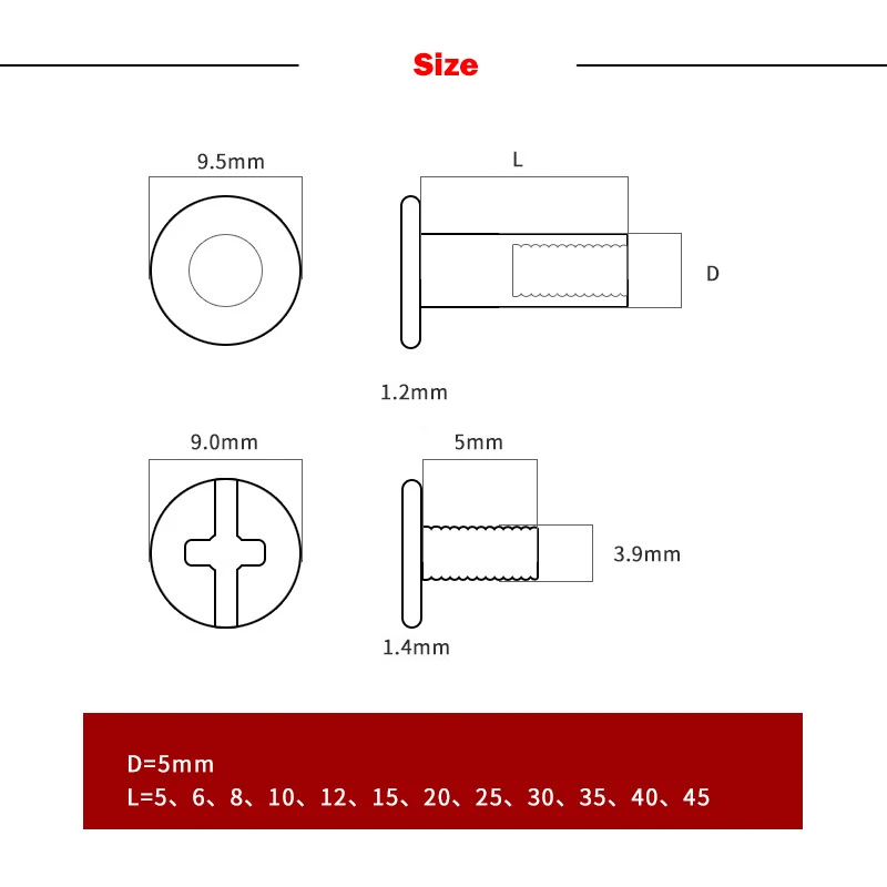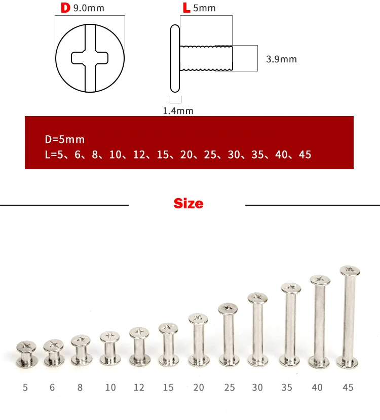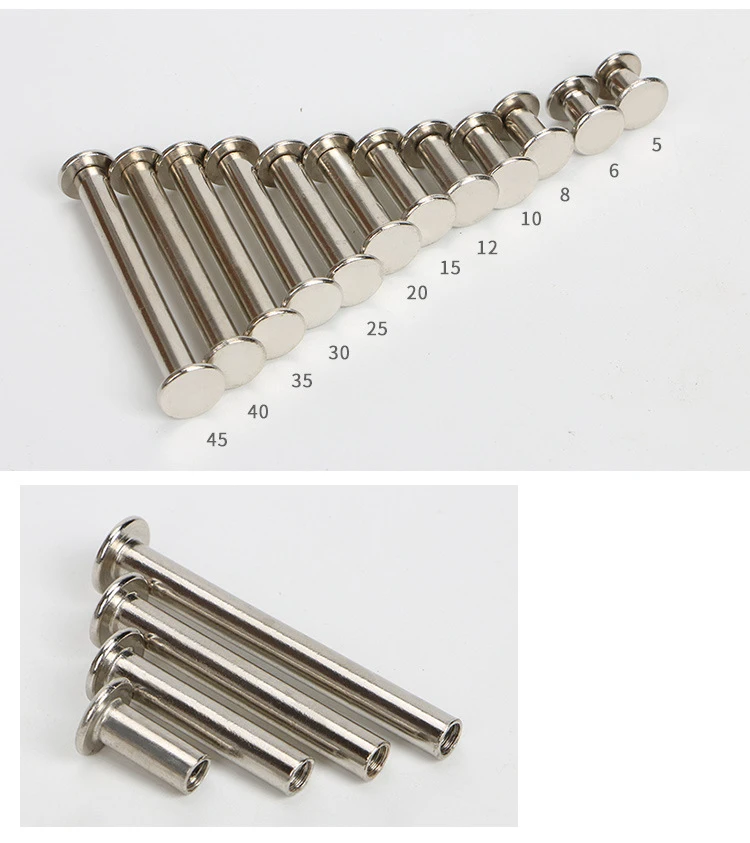 10 комплектов, серебристый Комбинированный винт из углеродистой стали для клепки гвоздей, резьба для подключения к фотографии, записная книжка, винт для меню, клепки 5-45 мм