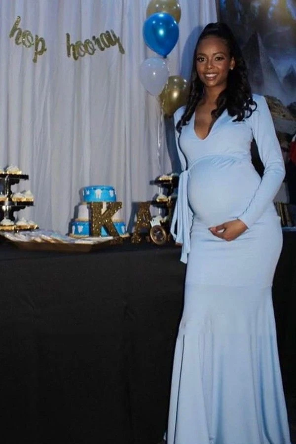 Светлые голубые блестящие макси платья YiMinpwp до пола с коротким ...