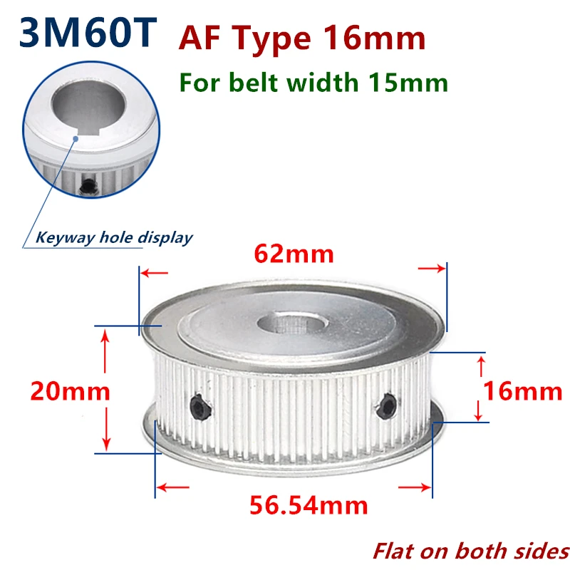 Arc Teeth Aluminum Alloy 60 Teeth 3M Timimg pulley Bore 6-25mm 60-3M-16 AF for Width 15mm HTD 3M Synchronous Belt Pitch 3mm 60Teeth 60T HTD3M pulley Belt Laser Engraving CNC Machine