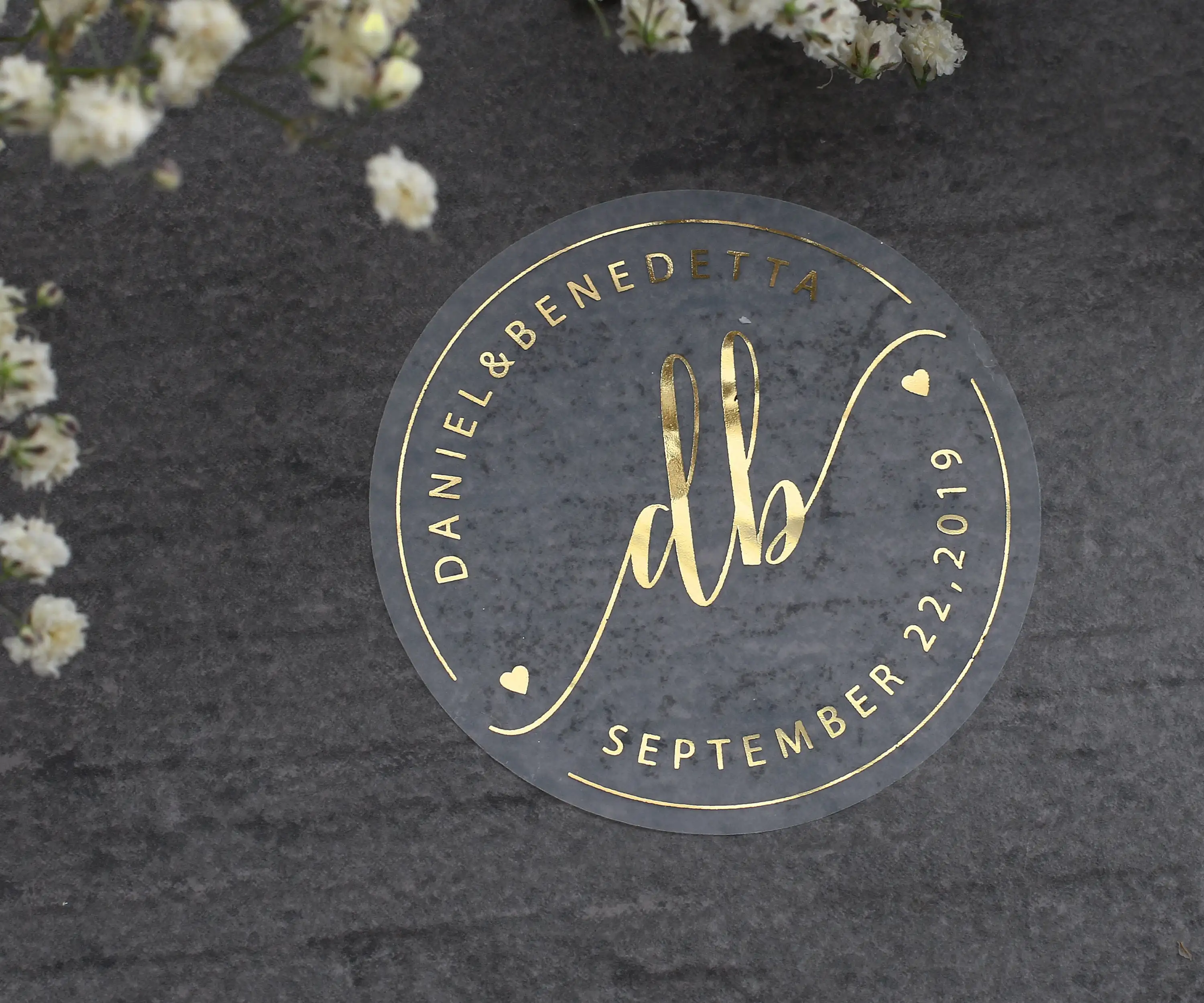 100 шт., настоящая фольга, блестящие золотые персонализированные свадебные наклейки на заказ, коробки для сувениров, ярлычки для капкейков, прозрачные, цветы