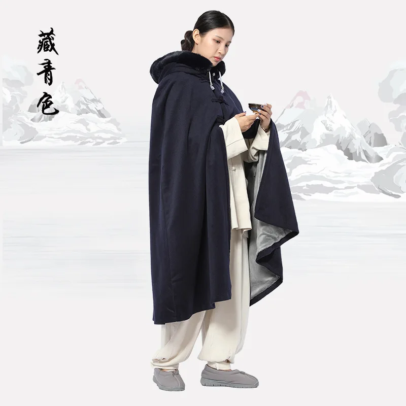 Медитация Zen кунг-фу мантия одеяния буддийских мохов платье Zen накидка шаль кунг-фу мантия холодный плащ Мужская китайская накидка с капюшоном