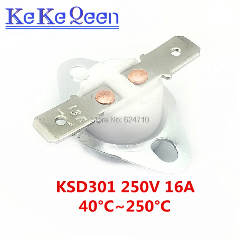 KSD301, 250 В, 16 А, 140 150 c, переключатель температуры, нормально замкнутое фиксированное кольцо с плоским основанием, 165, 175, 180, 190, 195, 200, 210, 220, 240, 250C