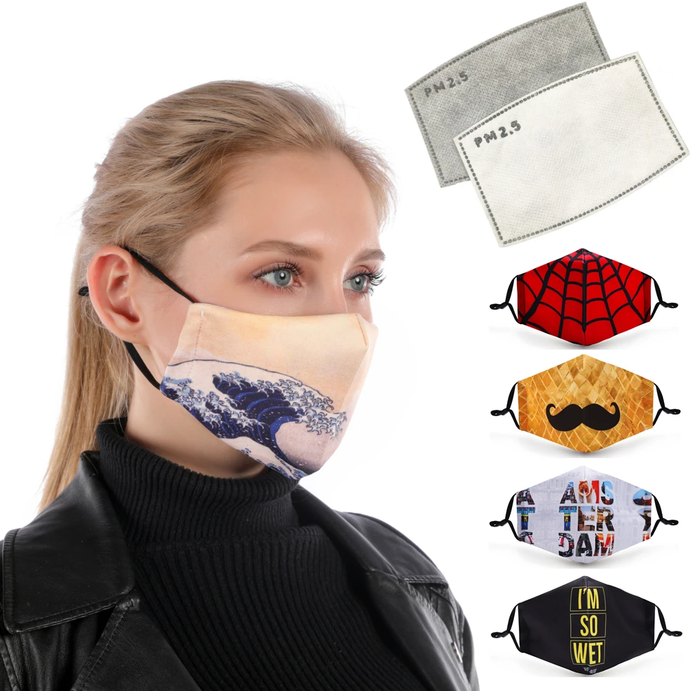 Маска для лица Zohra с принтом, многоразовая, защитная, фильтровальная бумажная маска PM2.5, противопылевая, устойчивая к бактериям маска от гриппа