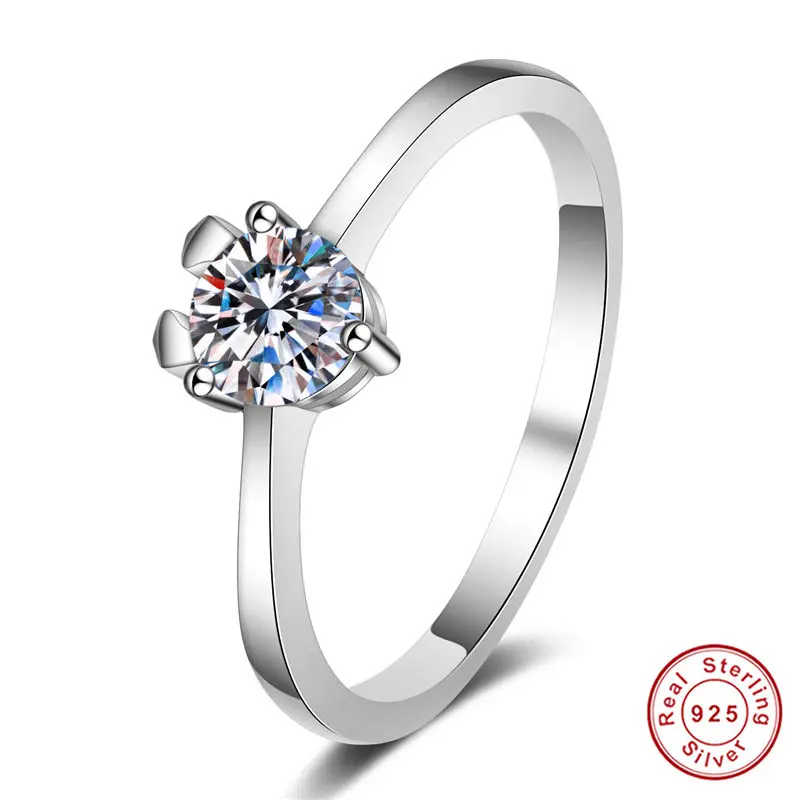 925 пробы серебро прошел алмаз Тесты идеально Муассанит 1ct кольцо ...