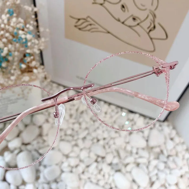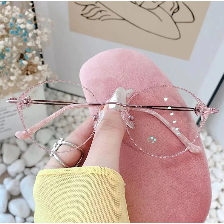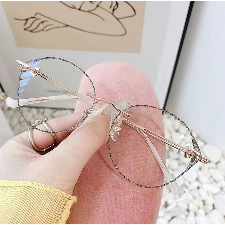 Большие круглые очки без оправы женские очки для близорукости алмазные очки по рецепту фотохромные прозрачные синие компьютерные очки 852