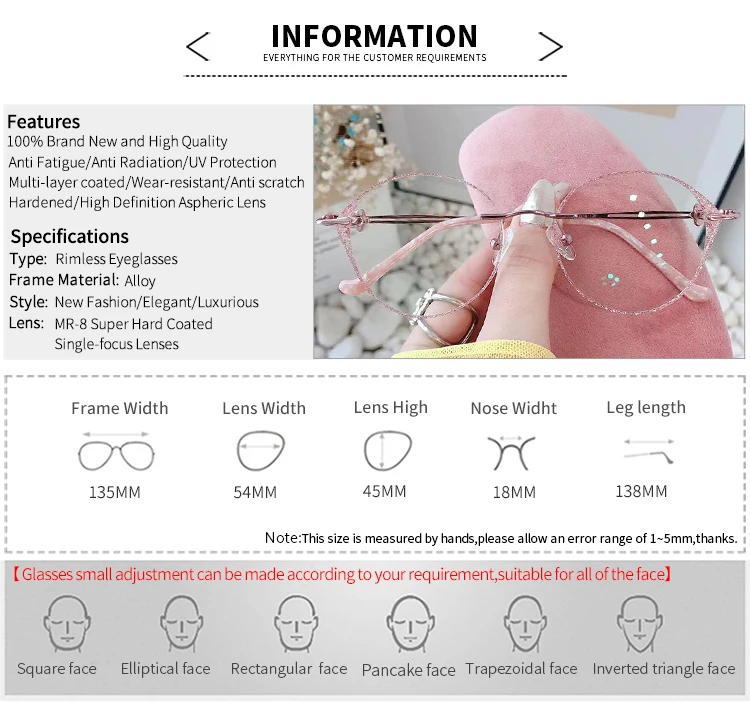 Frame DesignOversized Rimless Glasses