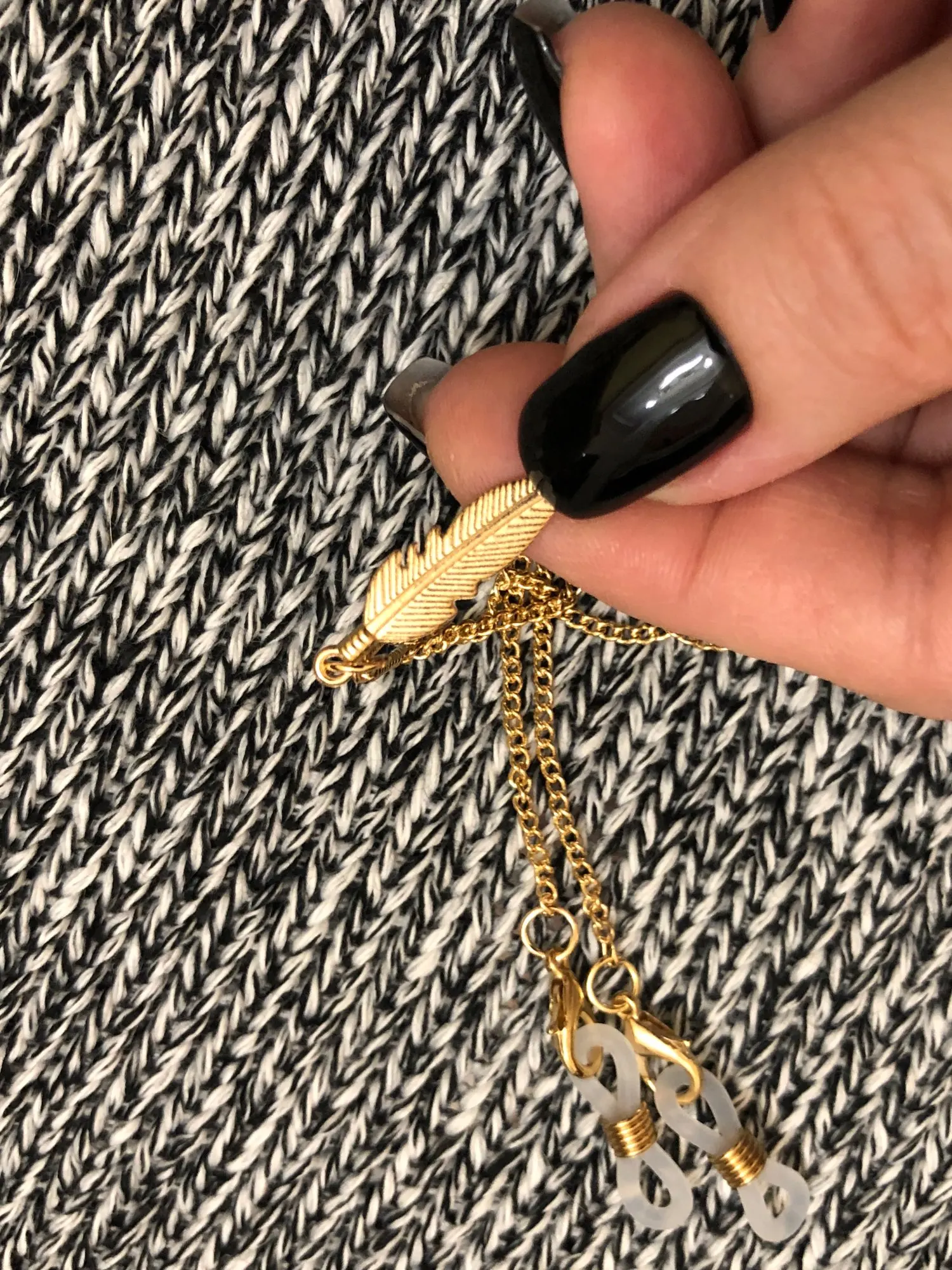 Держат очки хорошо, тоненькая цепочка и очень маленькое перышко