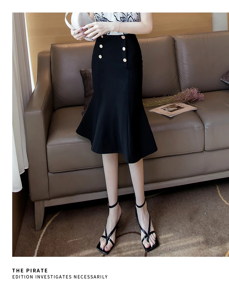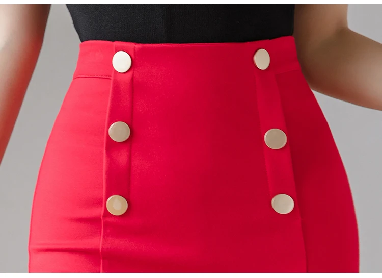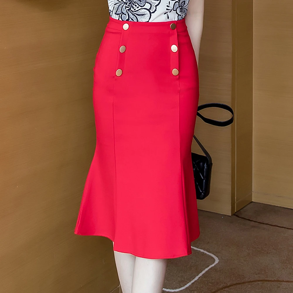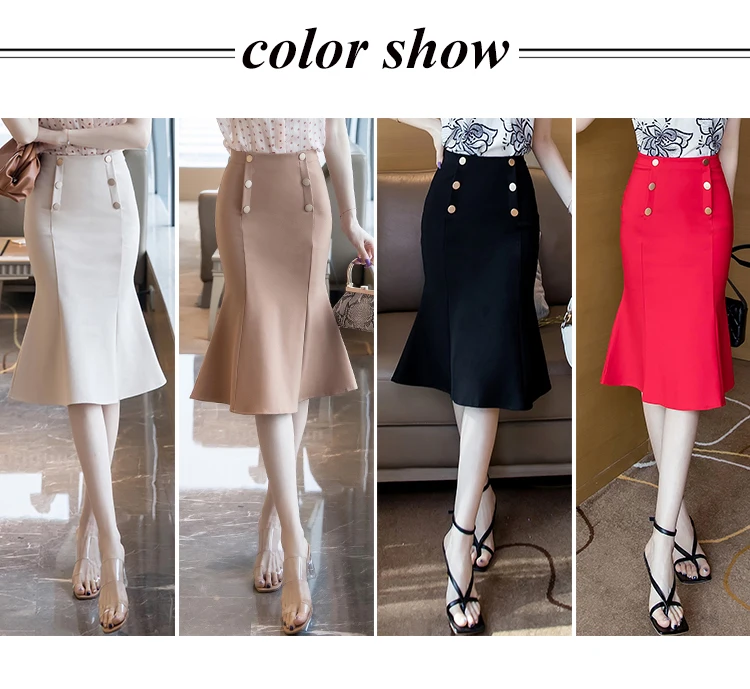 Юбка Женская средней длины с завышенной талией, Элегантная Модная однобортная эластичная офисная юбка-русалка, размера плюс, черный, абрикосовый цвета, 2021