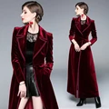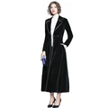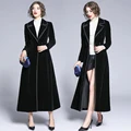 Женское бархатное пальто с запахом, Черное длинное теплое пальто с отложным воротником, винтажный подиумный тренчкот, верхняя одежда, зима 2019