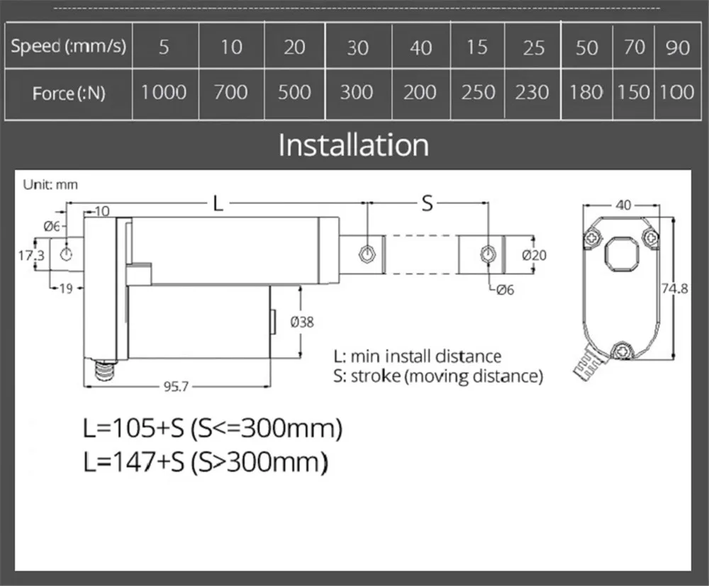 1. Ход (расстояние движения):50 мм/2 дюйма, 100 мм/4 дюйма, 150 мм/6 дюймов, 200 мм/8 дюймов, 250 мм/10 дюймов