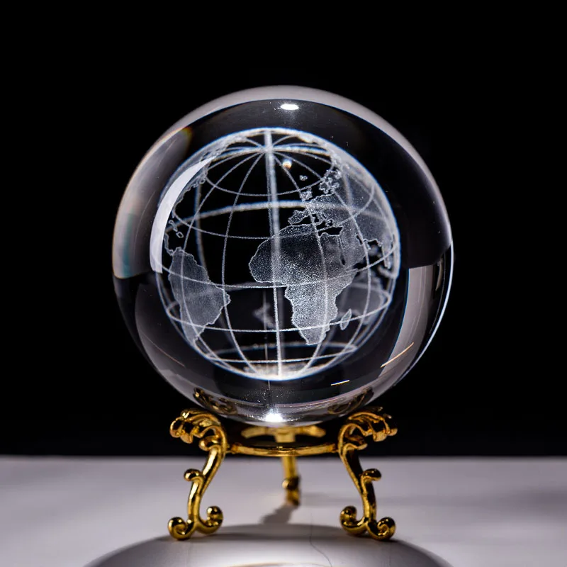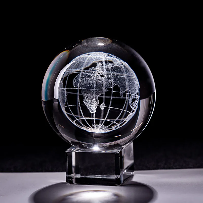 6 см лазерная гравировка земли миниатюрный Кристалл 3D шар, стеклянная Сфера стекло пресс-папье ремесло орнамент домашнее украшение статуэтка
