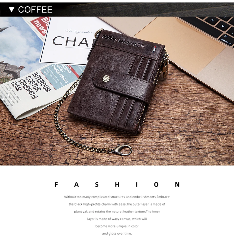 Мужской кожаный кошелек с радиочастотной идентификацией Crazy Horse, с бесплатной гравировкой, тонкий кошелек, держатель для карт, с цепочкой, Прямая поставка