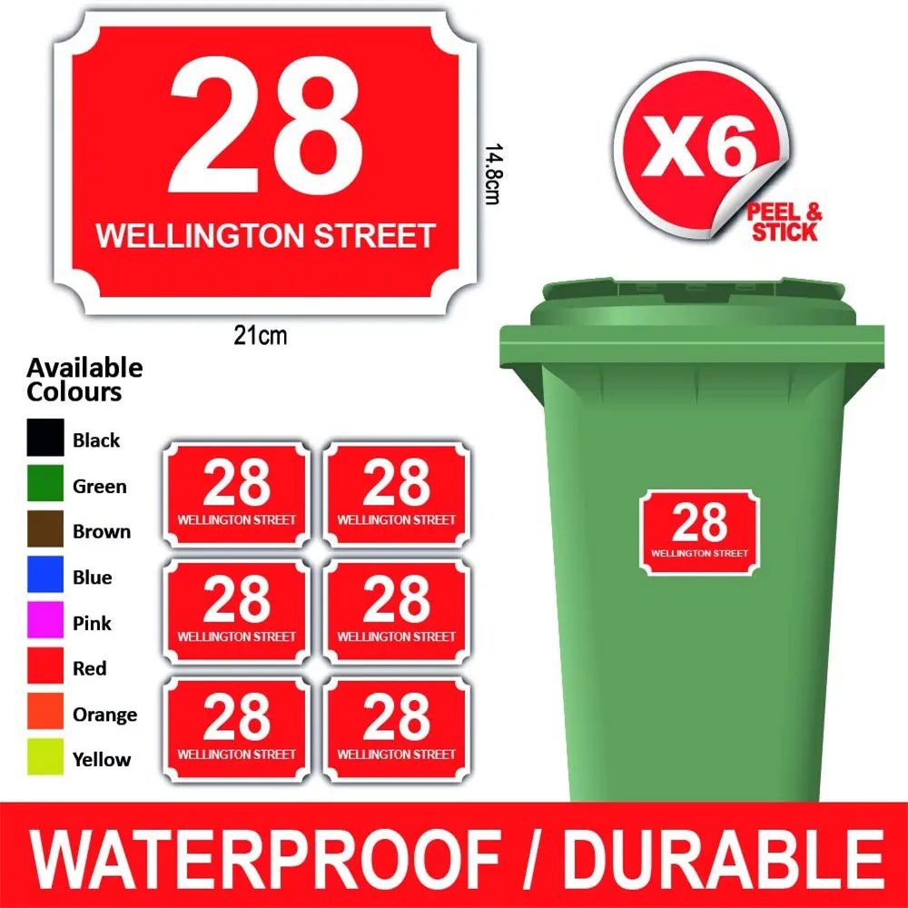 6 X персонализированные напечатанные наклейки на колесную корзину с номером дома, уличное имя, классический стиль