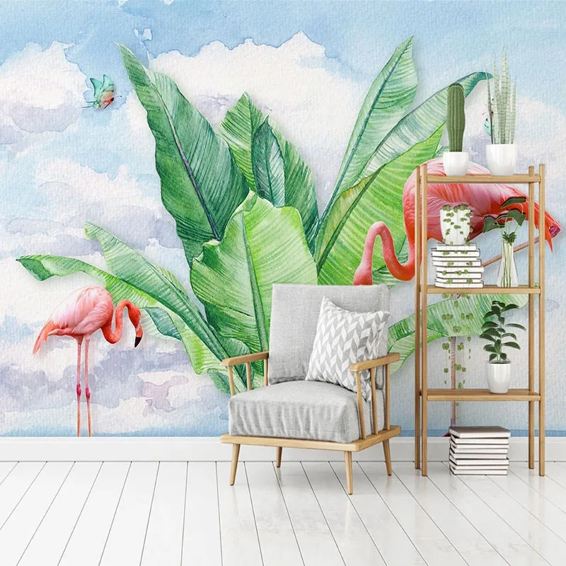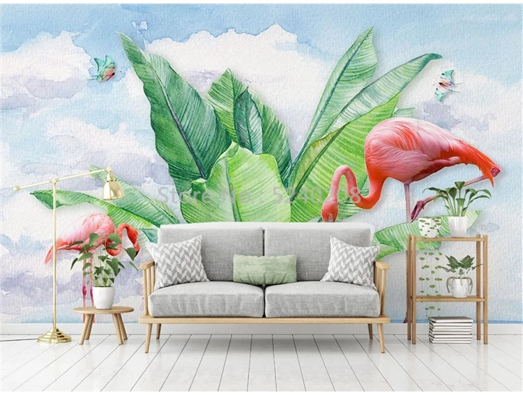 3D обои современный минималистский ручная роспись лист тропического растения птица бабочка фото настенные фрески гостиная стикер для ресторана