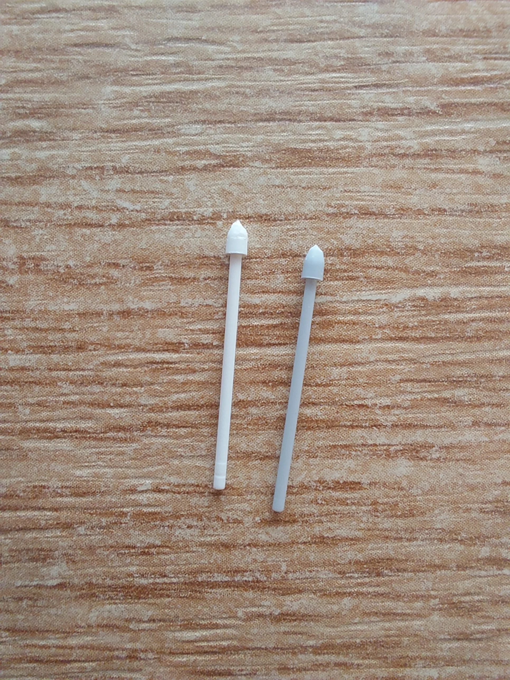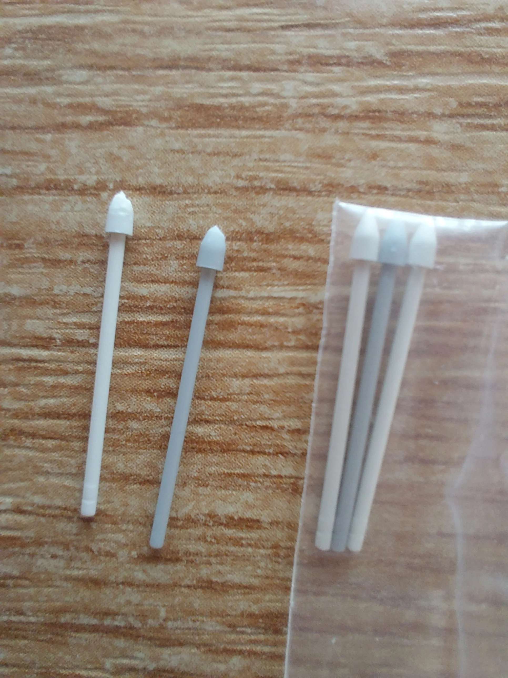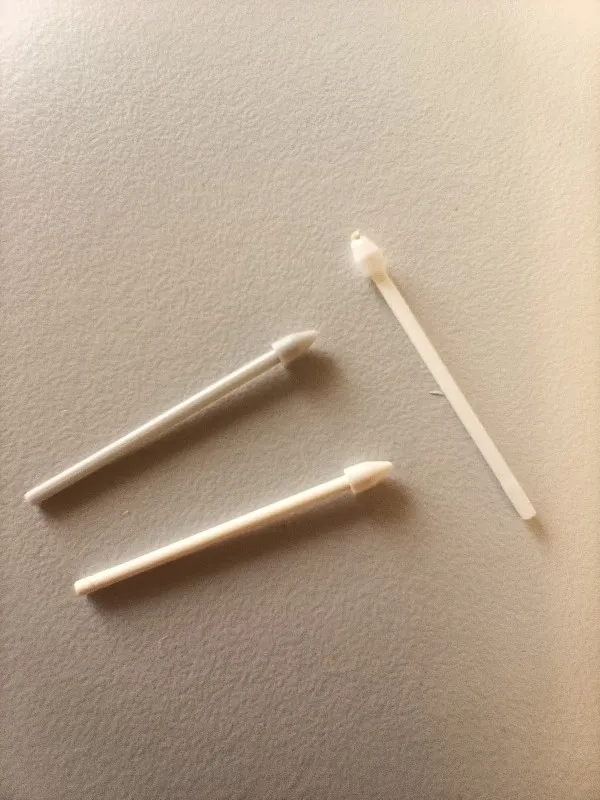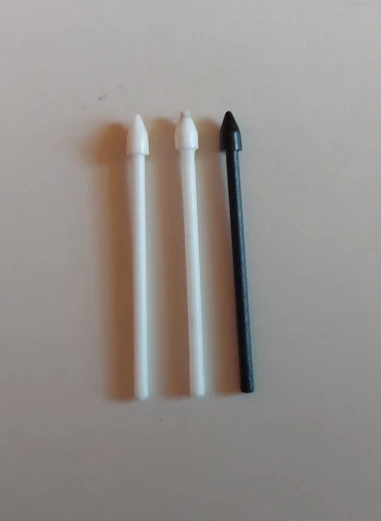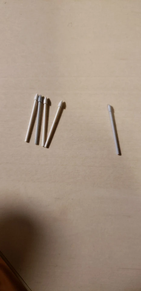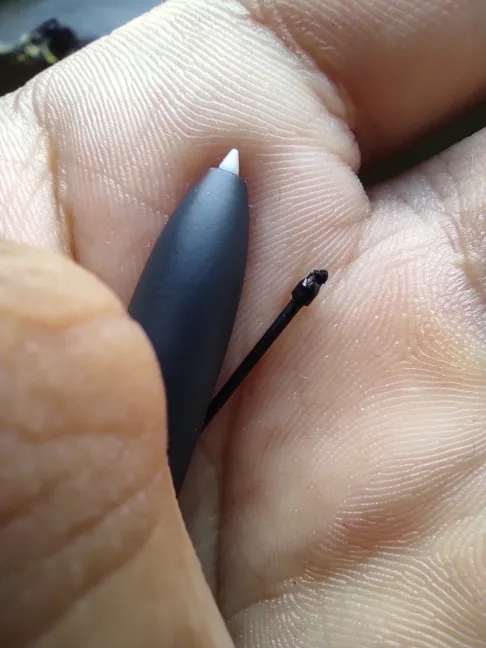 Достаточно неплохие сменные стержни. Они подходят, но нужно видимо аккуратно вставлять их, чтобы нормально чувствовался наклон и степени нажатия ( я использую их для рисования). поначалу я расстроилась, что наклон и нажатие очень сильно отличается от оригинала, но потом после нескольких попыток мне удалось вставить один из стержней ровно. важно не втыкать очень сильно вглубь. если присмотреться, то стержень немного тоньше оригинального в сечении(оригинал справа,). Но я приноровилась и все работает.