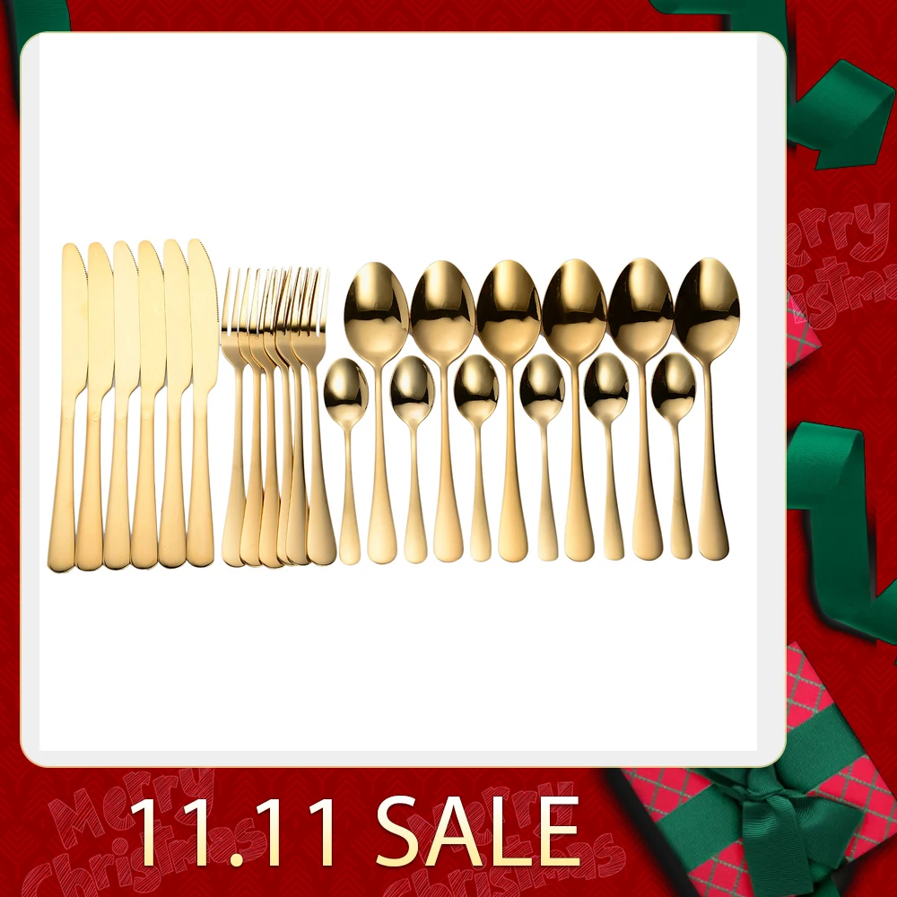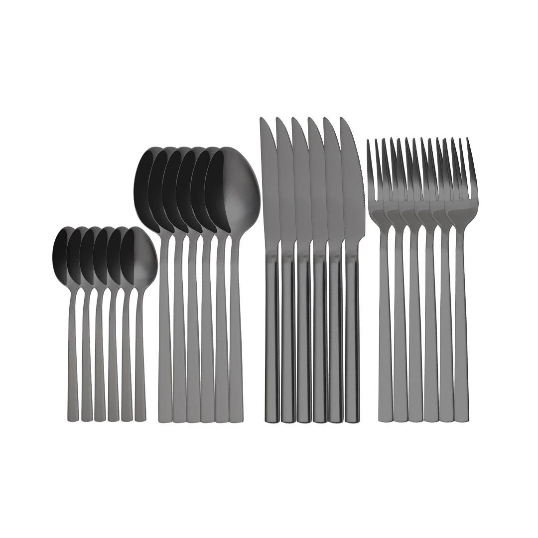 Набор столовых приборов из нержавеющей стали, 24 шт., черный, вилки, ножи, ложки