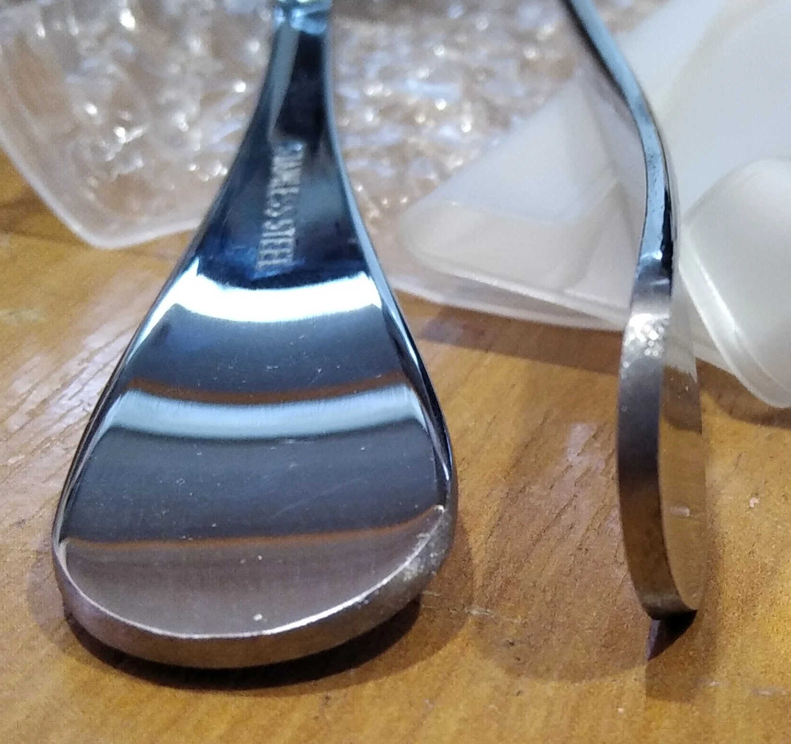 Обработка и доставка заказа очень быстрая. Приборы подлежат описанным характеристикам. На чайных ложках есть маленькие вкрапления, но это ничего. Товар отличный. Очень рада покупке!