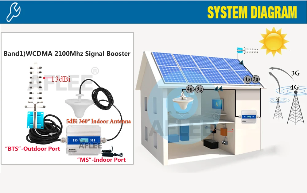 AFLEE набор усиления 70 дБ (LTE Band 1) 2100 UMTS Мобильный усилитель сигнала 3G (HSPA) WCDMA 2100MHz 3G UMTS сотовый ретранслятор усилитель
