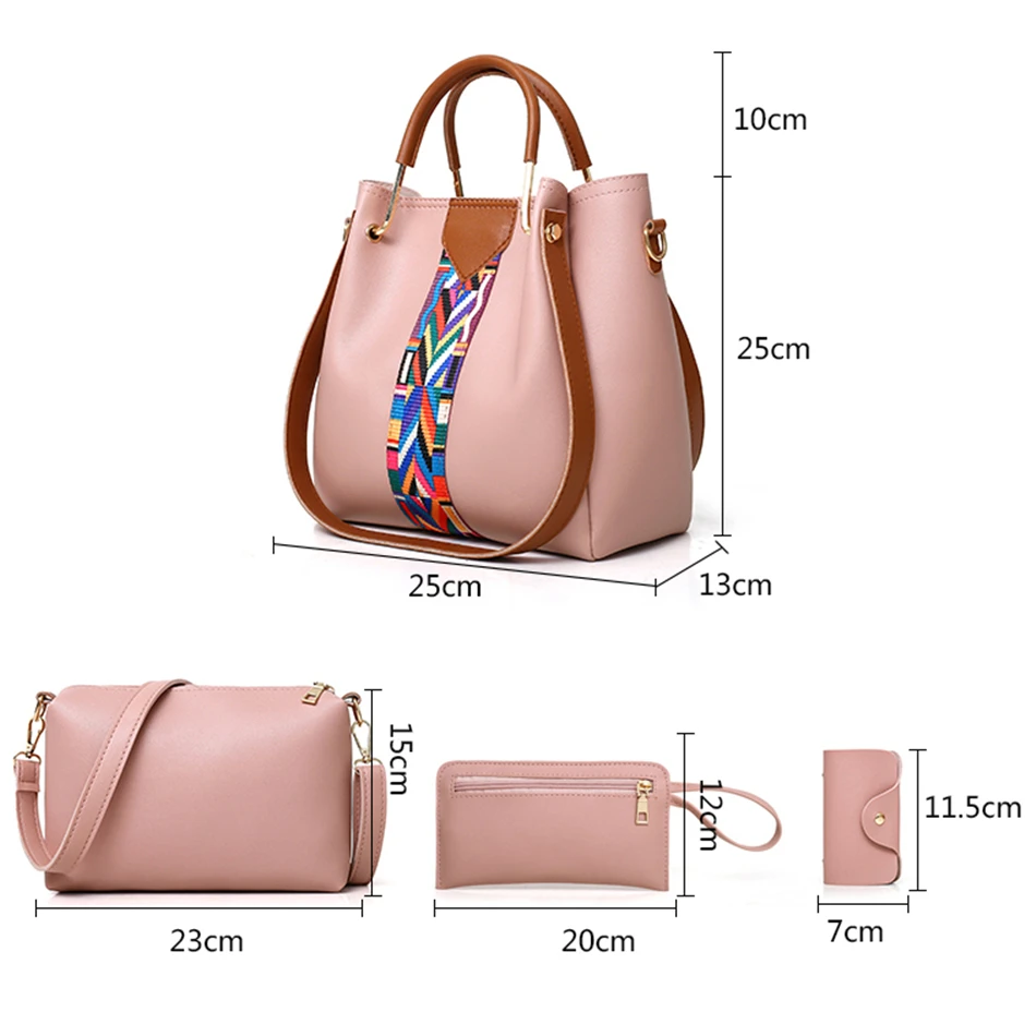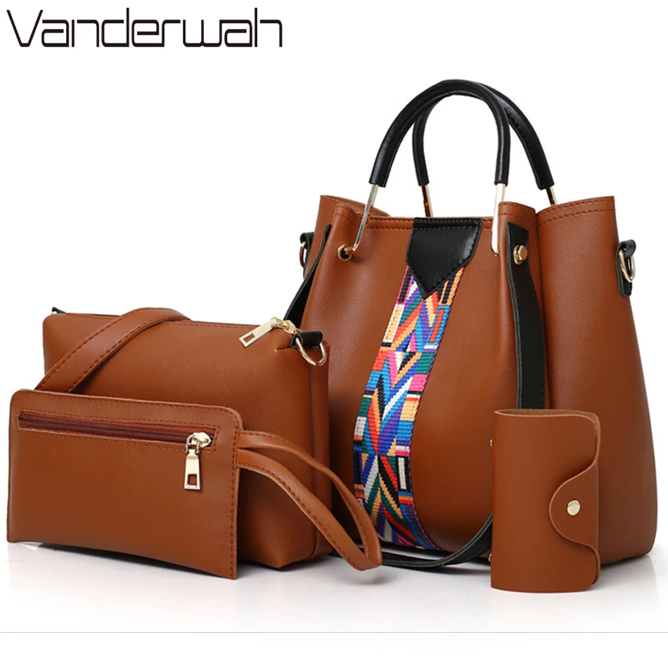 Женская сумка через плечо, из искусственной кожи, 4 комплекта