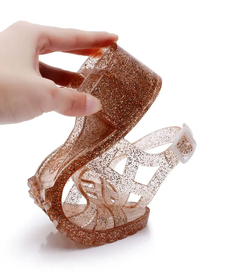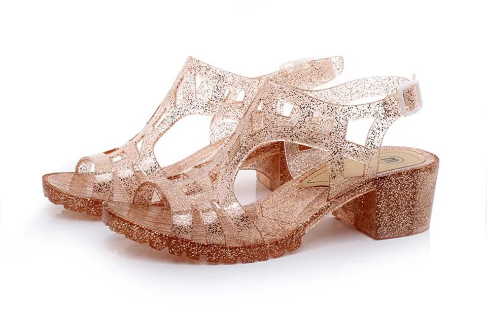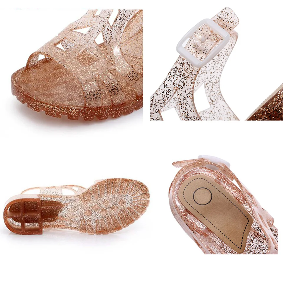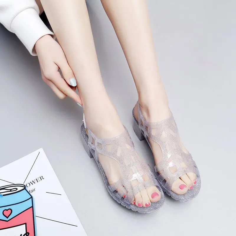 Сандалии-желе EOFK женские, Босоножки с открытым носком, римские сандалии, нескользящая пляжная обувь, блестящая обувь из пластика и пластика в стиле ретро, лето 2020