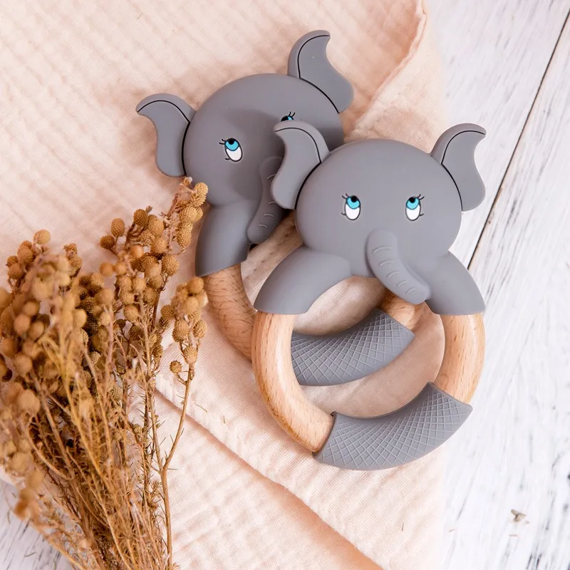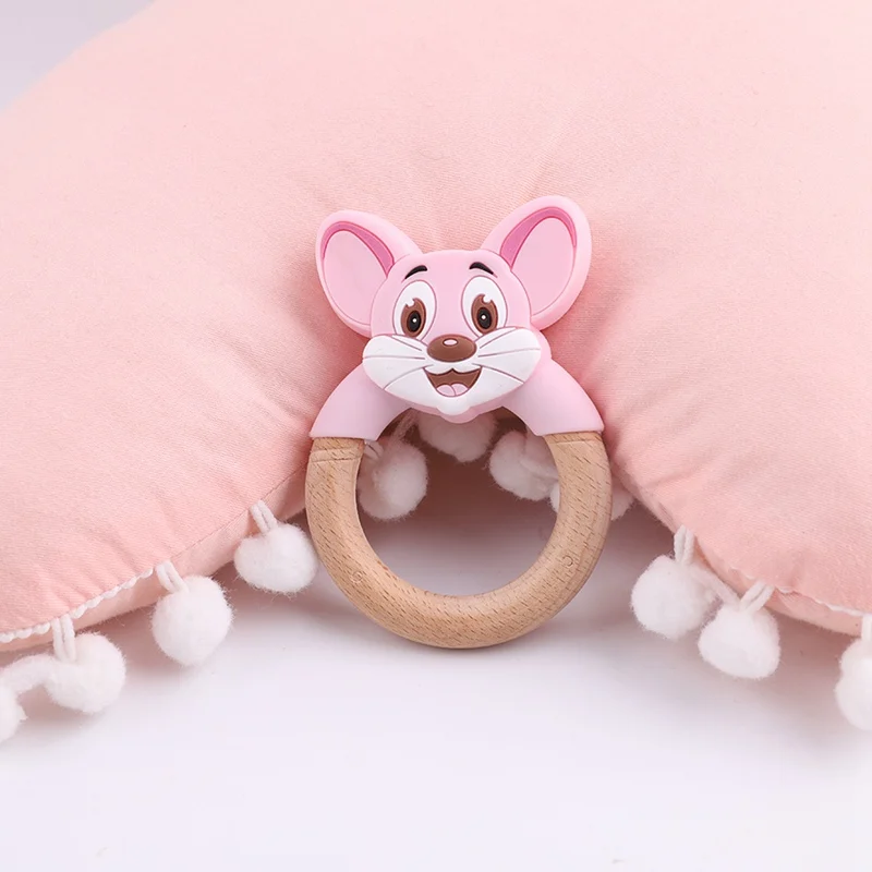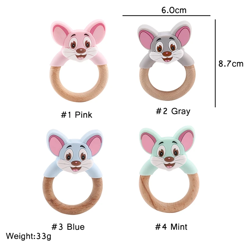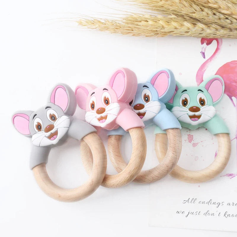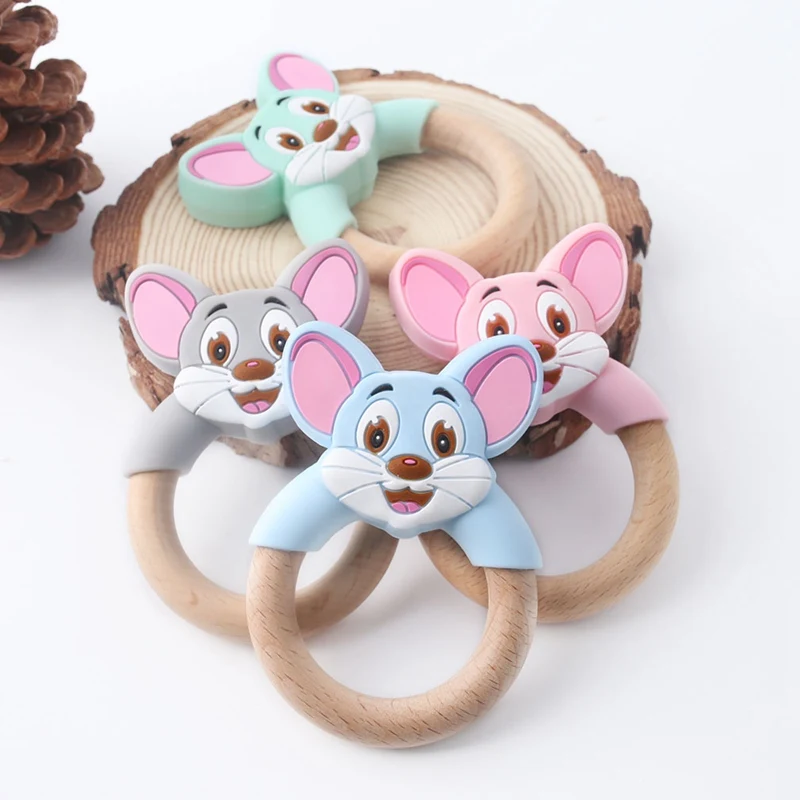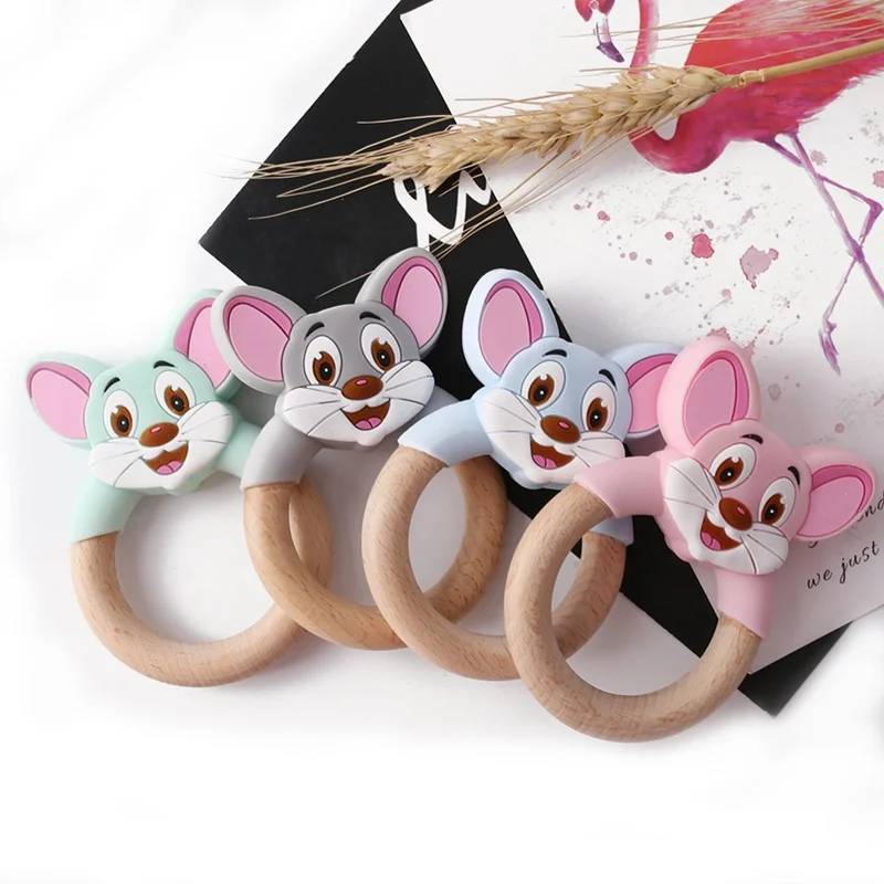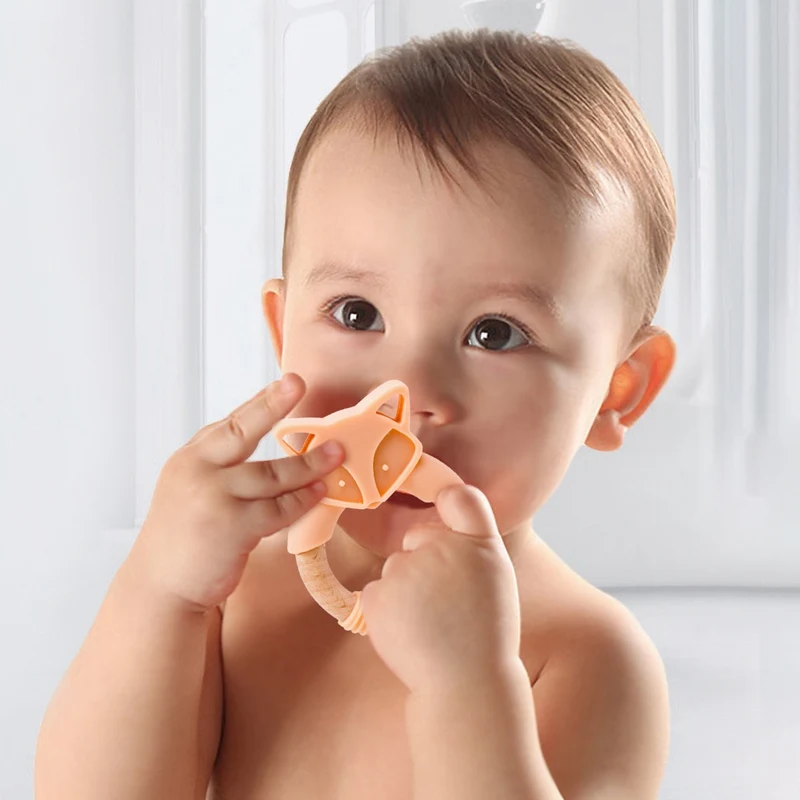 1 шт. детские деревянные Прорезыватели для зубов с изображением лисы, кольцо для животных, силиконовые деревянные кольца из бука для грызунов, Детская Соска-Подвеска Аксессуары для медсестер, игрушки для детей