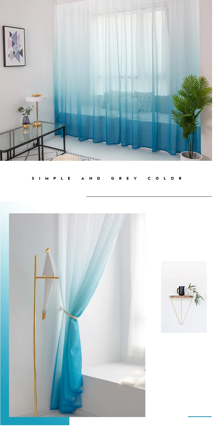 Занавеска из чистой марли с градиентом s для гостиной, столовой, кухни, из зеленого тюля, занавеска из серого тюля, готовая продукция по индивидуальному заказу