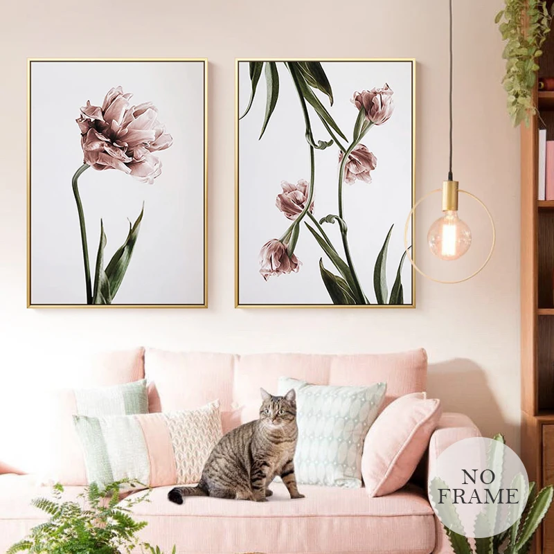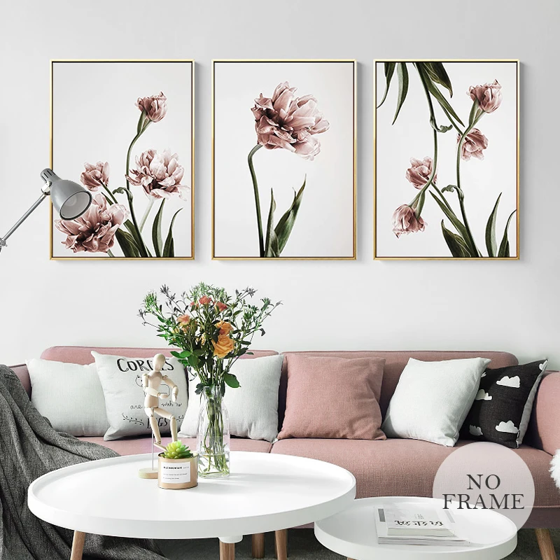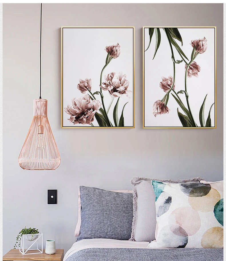 Романтический постер в скандинавском стиле с цветами, Картина на холсте, настенные художественные картины для гостиной, HD плакаты и принты, розовый, зеленый, домашний декор