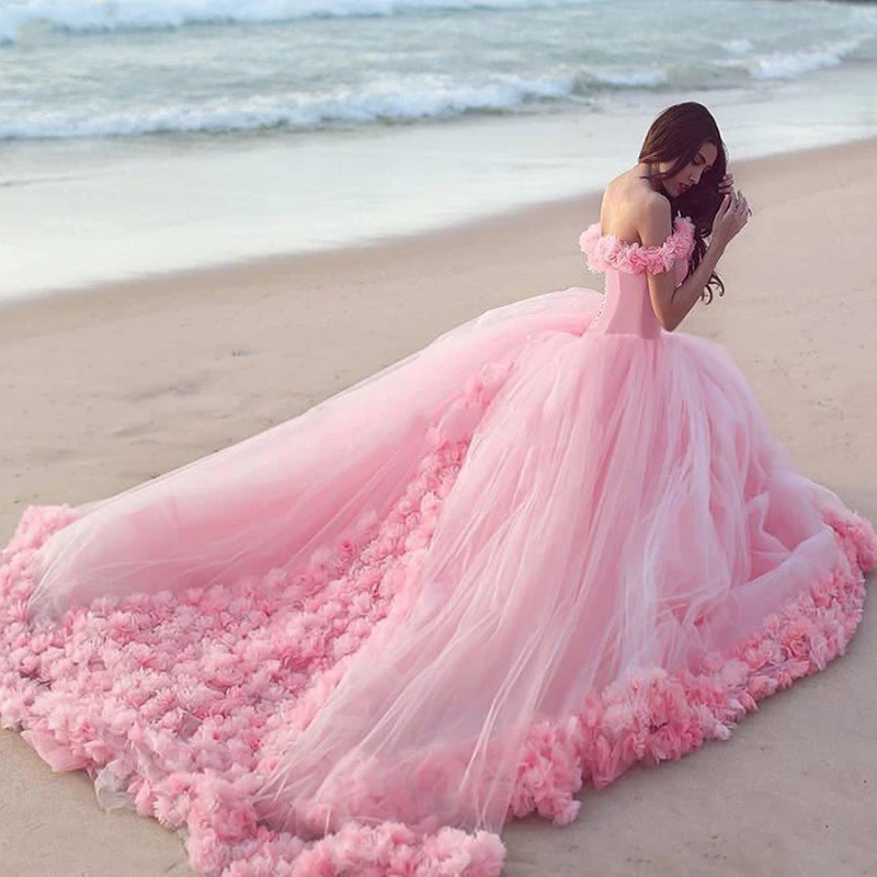 2020 розовые платья Quinceanera Принцесса Золушка с 3D цветком с открытыми плечами элегантное искусственное милое 16 платье QE12
