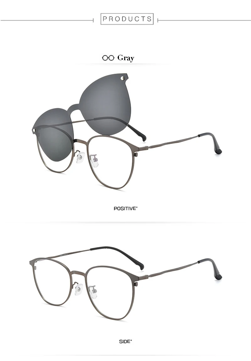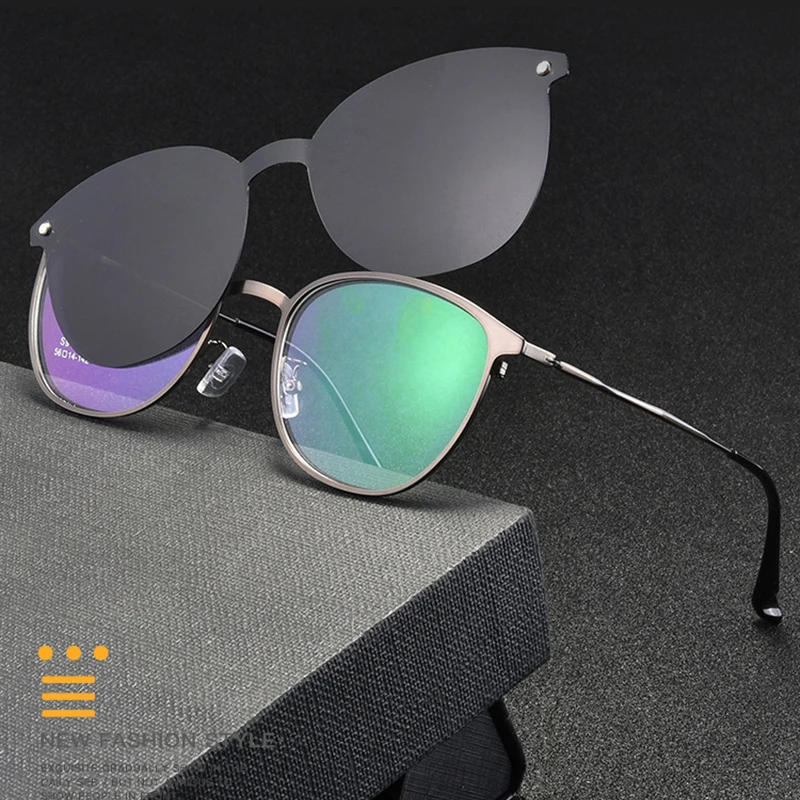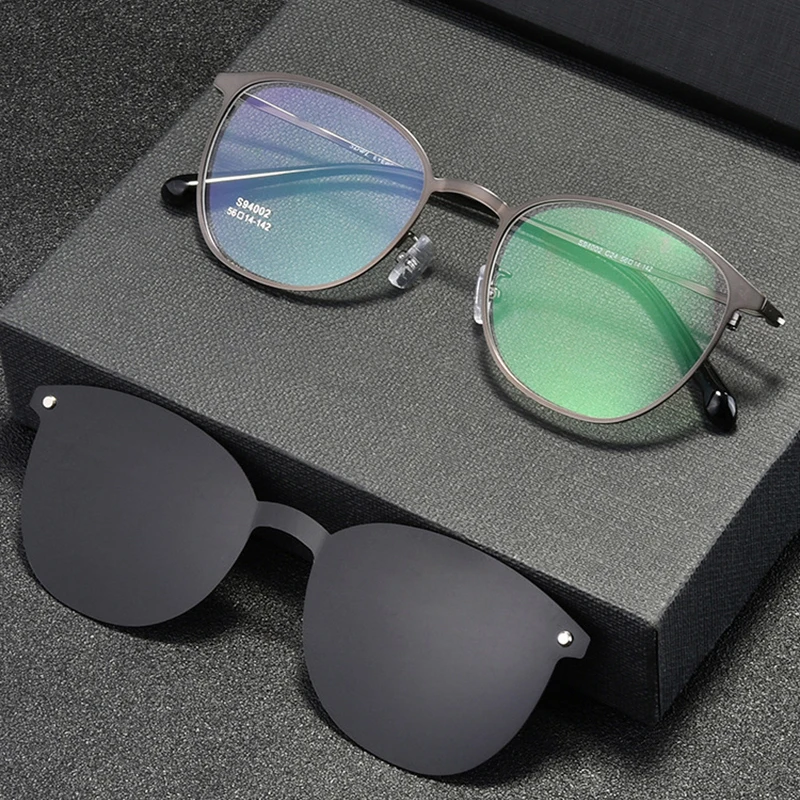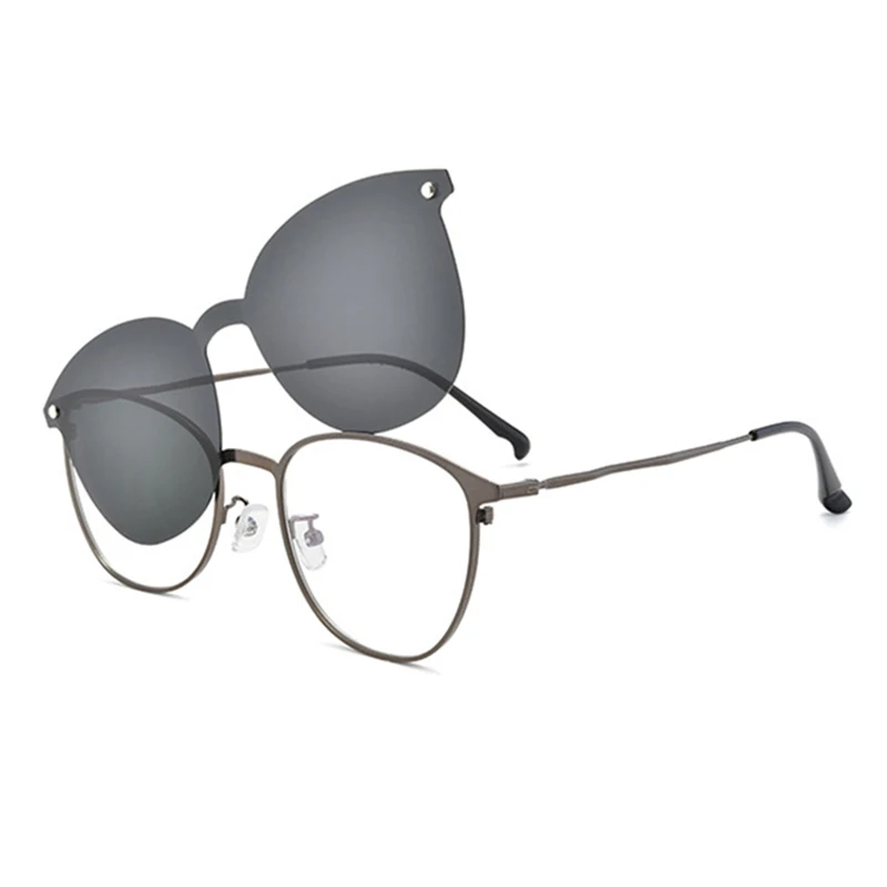 Оправа для оптических очков овальной формы с поляризационными зажимами, оправа для очков из металлического сплава, по рецепту