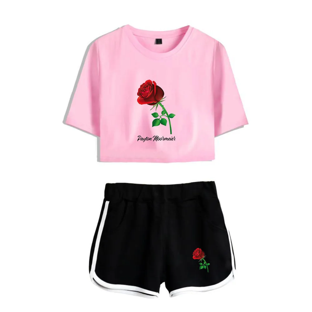 Женский спортивный костюм знаменитости из двух предметов, топ и шорты с принтом в стиле Пейтон мормэйер, 2020