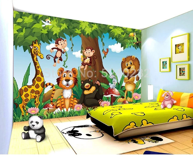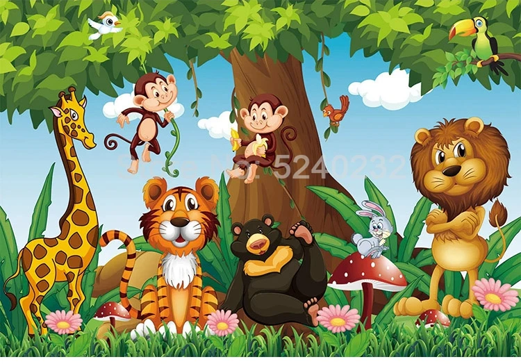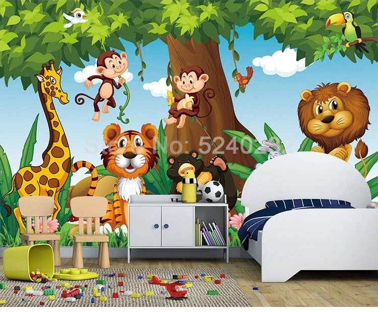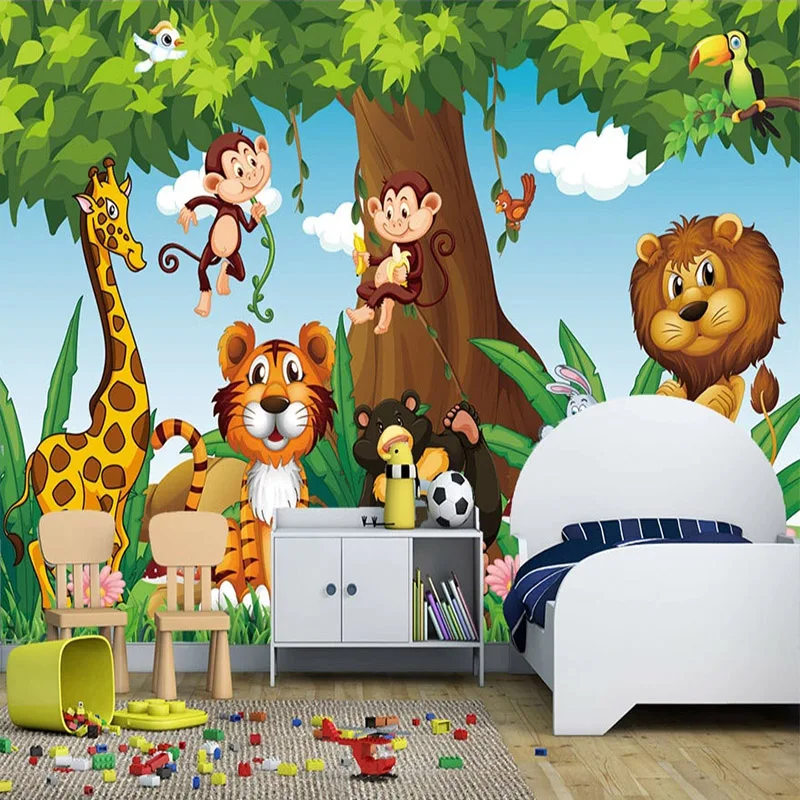 Пользовательские 3D фотообои, Лев, тигр, жираф, обезьяна, животные, фреска, детская комната, спальня, полноразмерный фон, настенная роспись
