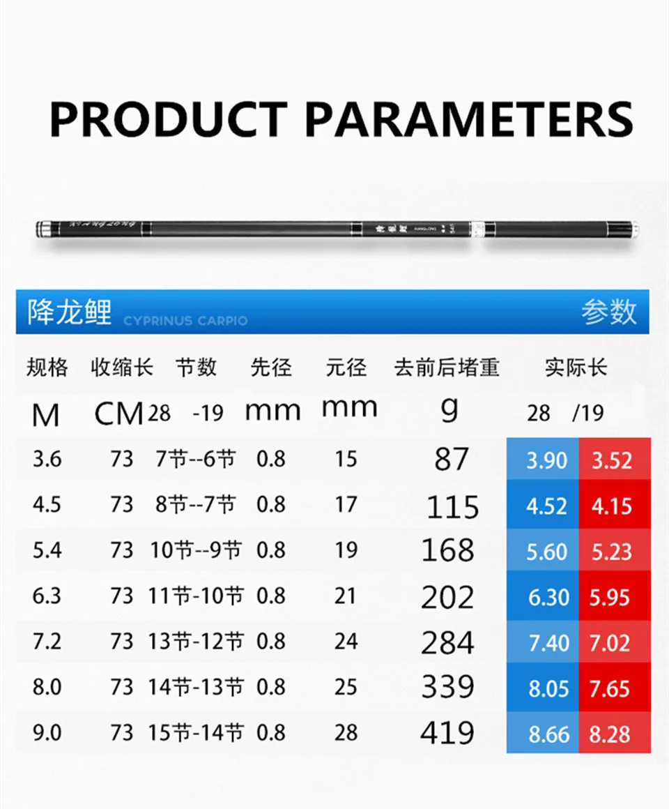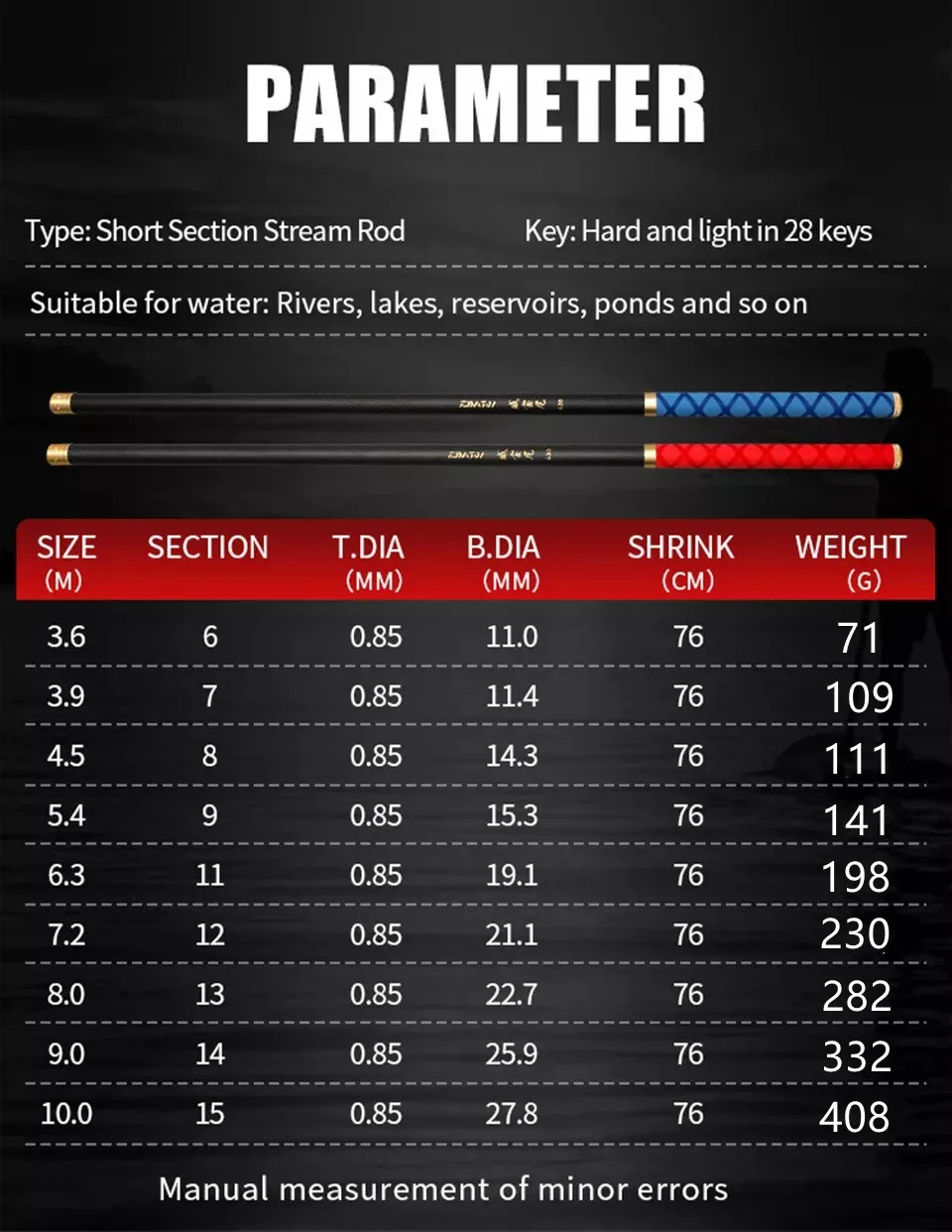 Телескопическая удочка из углеродного волокна, 3,64,55,46,3789 м