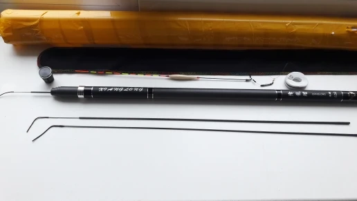 Всё супер есть 2запасных хлыстика , 1из двух колен чуть мощнейший чем стоит в удочка, 2 одинарный вставляется вместо двух колен он мощный.