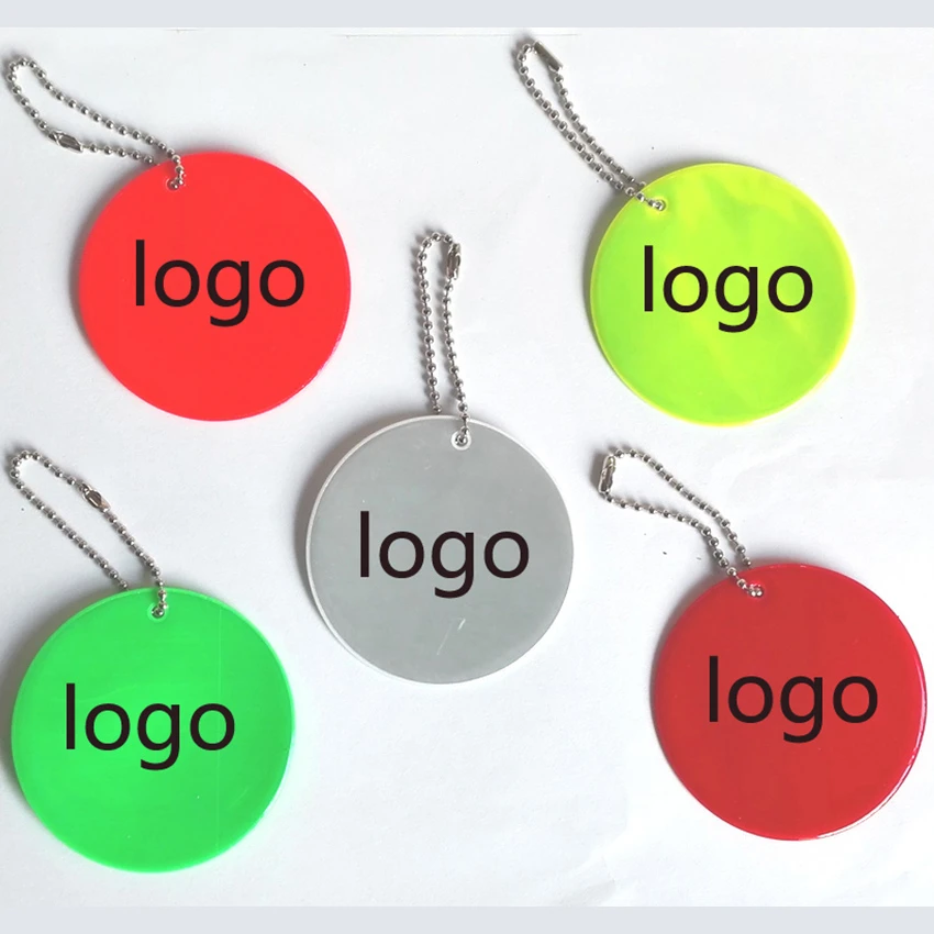 Светоотражающие брелоки с логотипом на заказ, 11 цветов, украшение подвеска на сумку, светоотражающие брелоки, подарок на праздник для безопасного использования на дороге