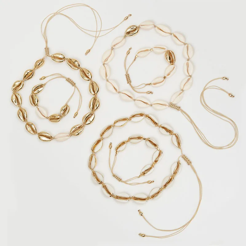 Чокер из морских раковин Puka с золотом каури для женщин и девушек, комплект из ожерелья в богемном стиле из морских ракушек, пляжные летние веревочки, Подарочная бижутерия, 2020