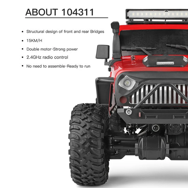 ПараметрыНазвание продукта: RC автомобильБренд: WltoysМодель: 104311Цвет: красныйЧастота дистанционного управления: 2,4GМаксимальная скорость: 15 км/чПриводной двигатель: 280 щеточный моторРасстояние дистанционного управления: ≥ 50 мБатарея: 7,4 в 1200 мАч литиевая батареяВремя использования: около 30 минутЗарядное устройство: 7,4 в 2000 мАч USB зарядное устройствоВремя зарядки: около 2 часовРазмер изделия: 47,2*26,8*22,7 смВес продукта (включая батарею): 1740 гМатериал изделия: абс + нейлон + электронные компоненты + металлУпаковочный лист1 * автомобиль с дистанционным управлением (включая батарею)1 * пульт дистанционного управления1 * инструкции1 * Зарядное устройство USB1 * маленькая крестовая отверткаПримечание:Все изображения и описания предназначены только для иллюстративных целей. Характеристики продукта, функции и внешний вид могут отличаться от фактического использования. Отклонение цвета зависит от фактической конфигурации системы, и допускается небольшая разница в размере из-за ручного измерения. Мы рекомендуем вам проверить продажи для точного предложения, если нужно.