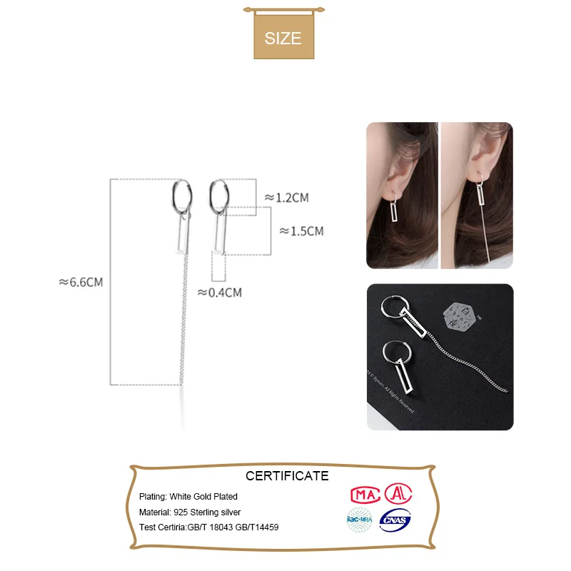 100% реальные 925 стерлингового серебра геометрические серьги в вид...