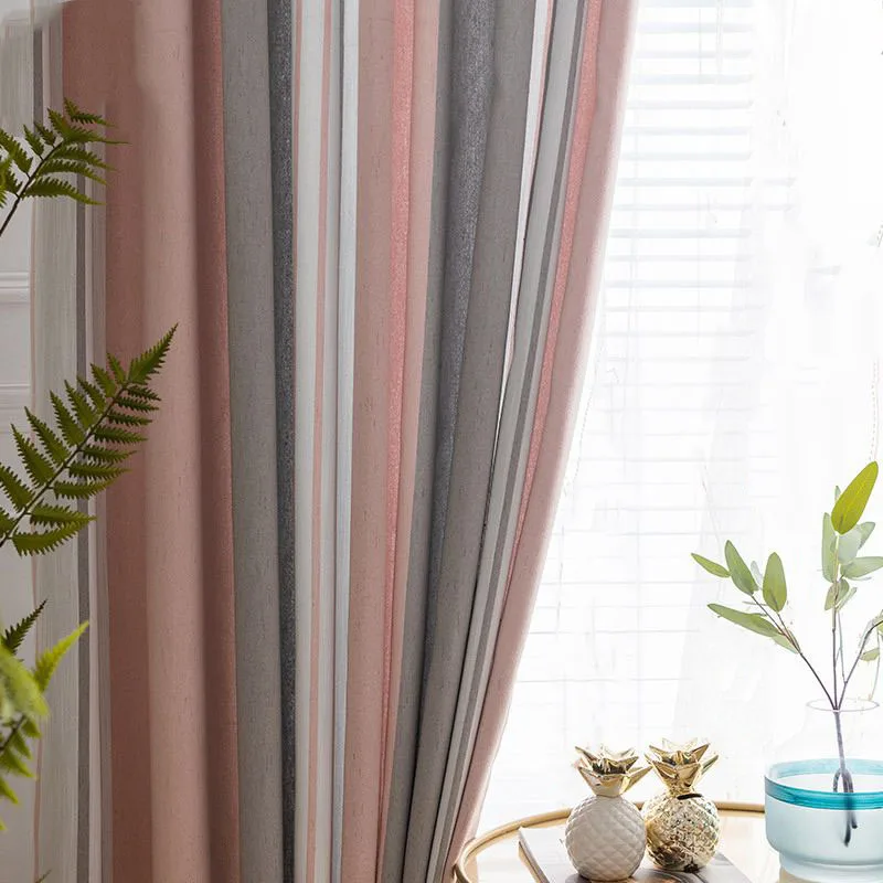 Скандинавская розовая и серая занавеска в полоску для спальни, гостиной, тюлевые занавески, современные затемняющие шторы, готовые оконные занавески ZH029 #4