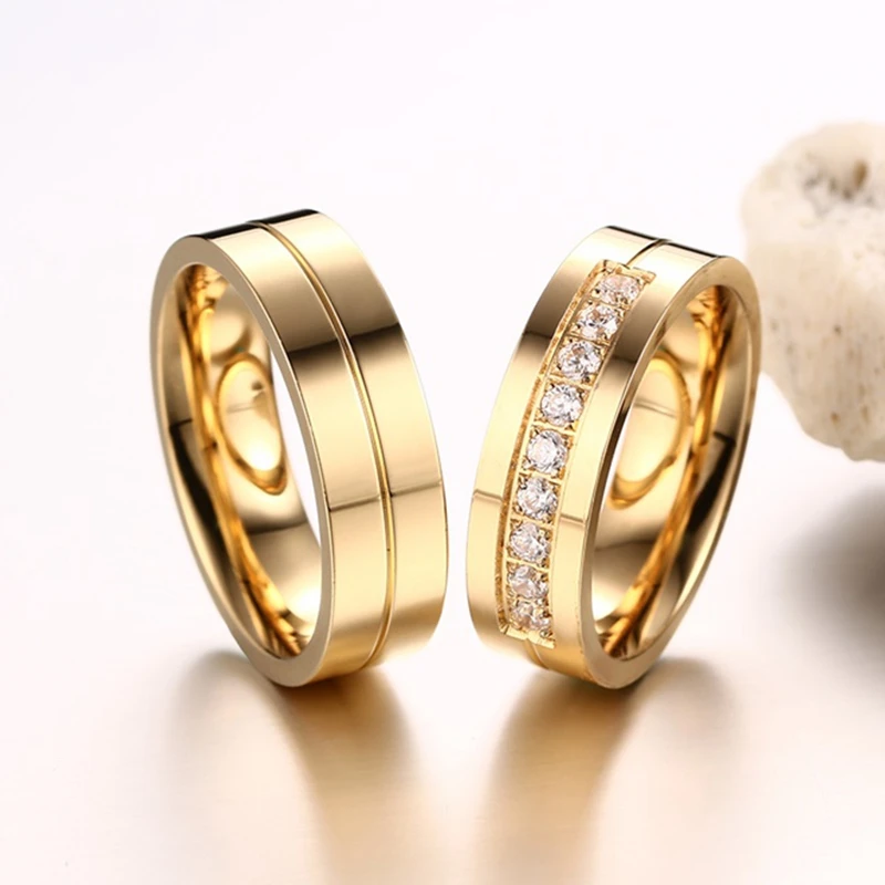 Классические свадебные кольца для женщин, модные титан, сталь, цирконий, кристалл, золотой цвет, пара ювелирных изделий для мужчин, бесплатная коробка, подарки на день Святого Валентина