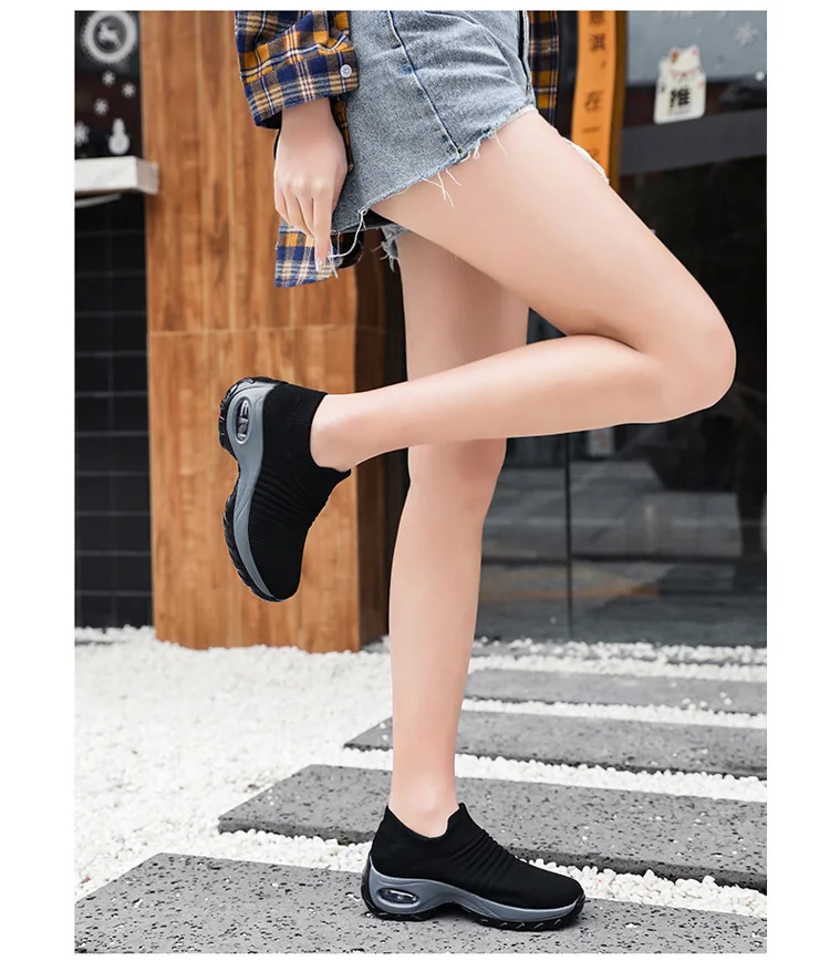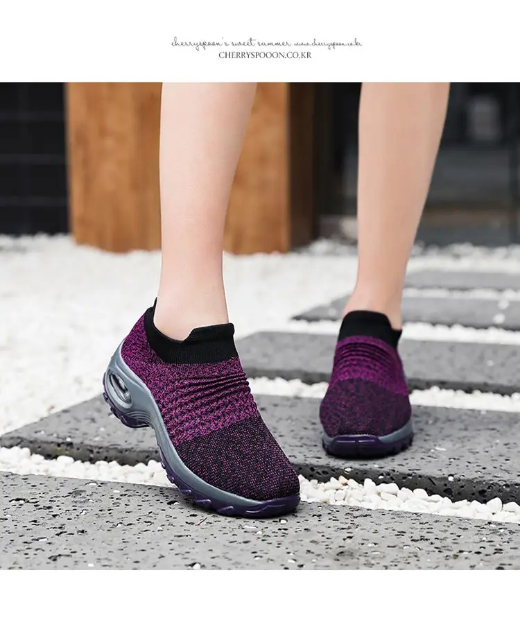 Женские кроссовки-носки без шнуровки, сетчатая обувь на платформе, ...