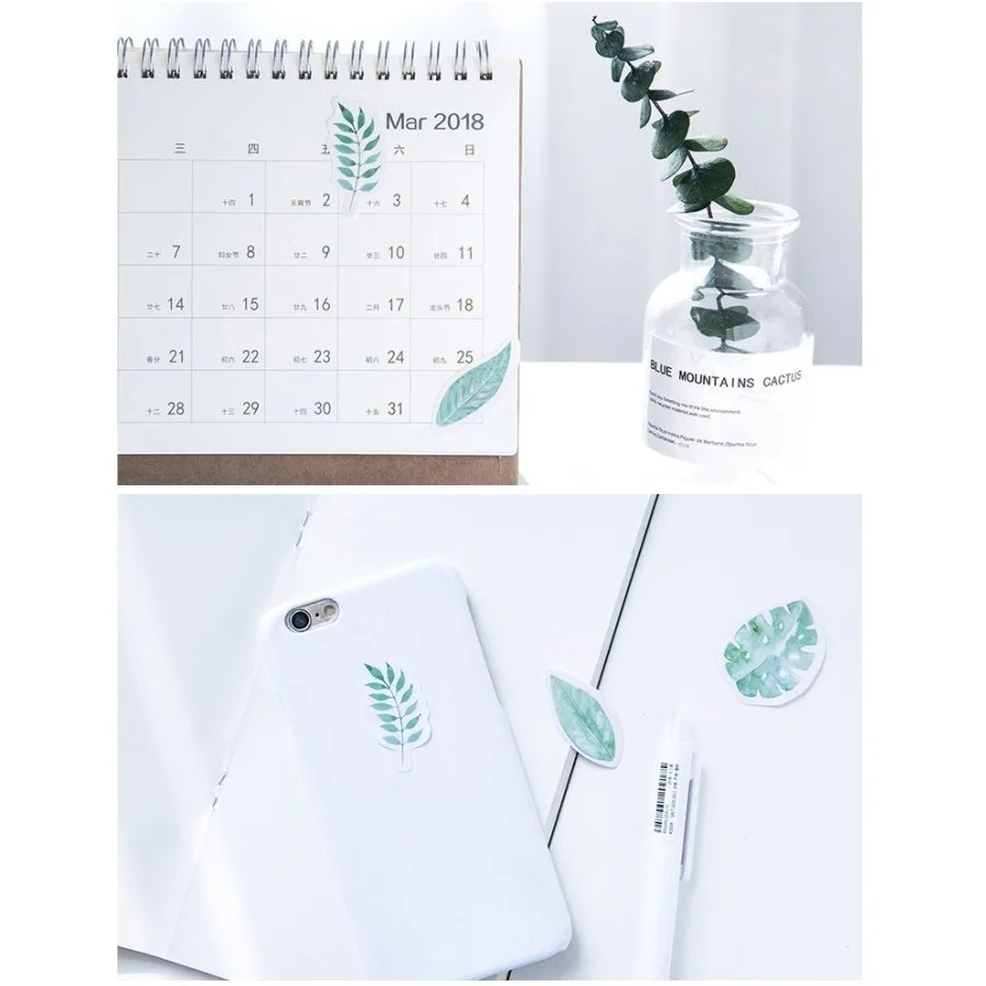 45 шт мята дневник креплений для GoPro 40 мм Мини свежий зеленых листьев растений стены стикеры сделай сам клей Post украшения подарок печать Журнал Инструмент A6422