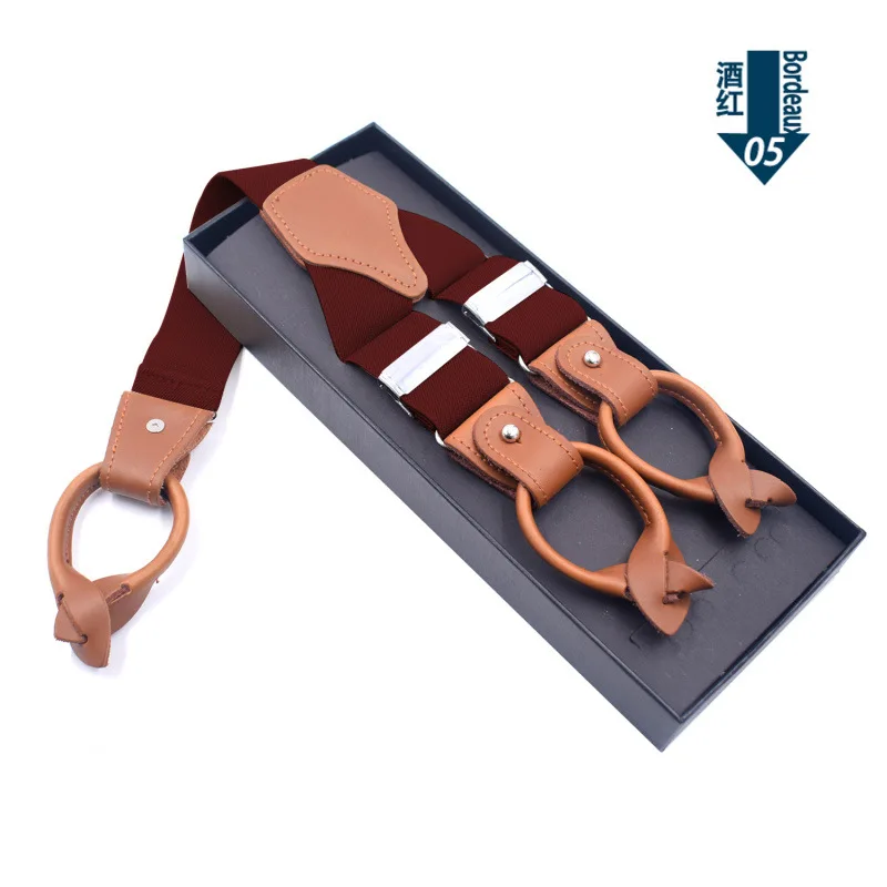 Yienws мужские подтяжки для брюк бордовые винтажные кожаные подтяжк...
